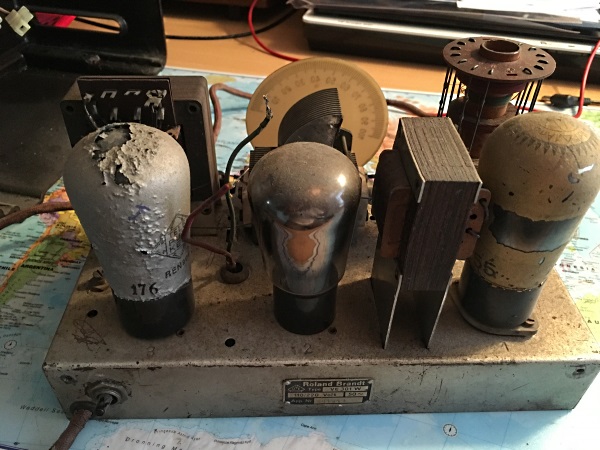 De buizenbezetting van deze radio behoort te zijn, RGN354 voor de gelijkrichting, REN904 voor het HF en detectie gedeelte, en RES164 voor de eindtrap.