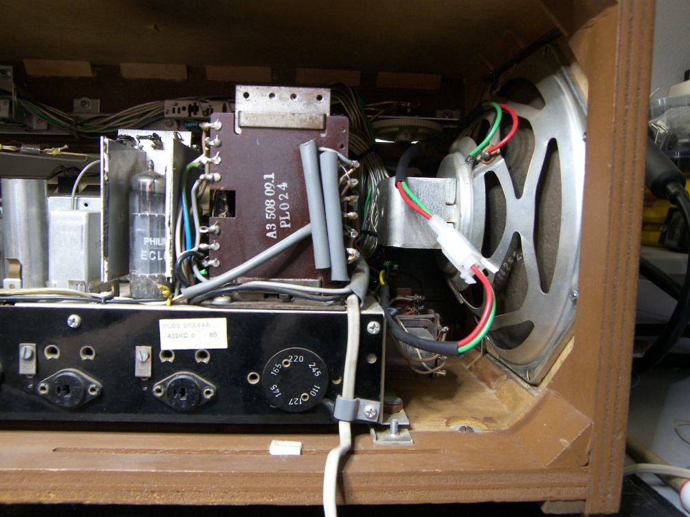 De B8X44A heeft geluid op 2 kanalen, alleen 2 slechte buisvoeten (pertinax zwart) en dus veel gekraak.