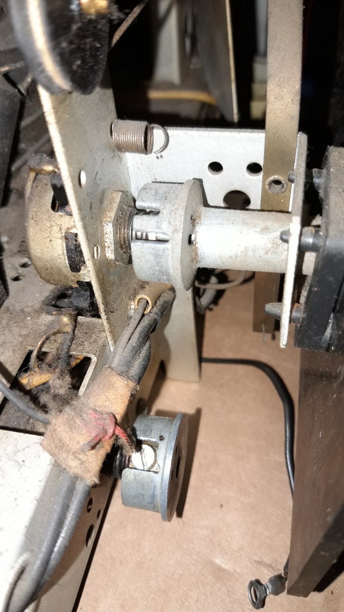Dit is de positie waar het kabeltje nodig is: de twee trommels van de kop en de potmeter.