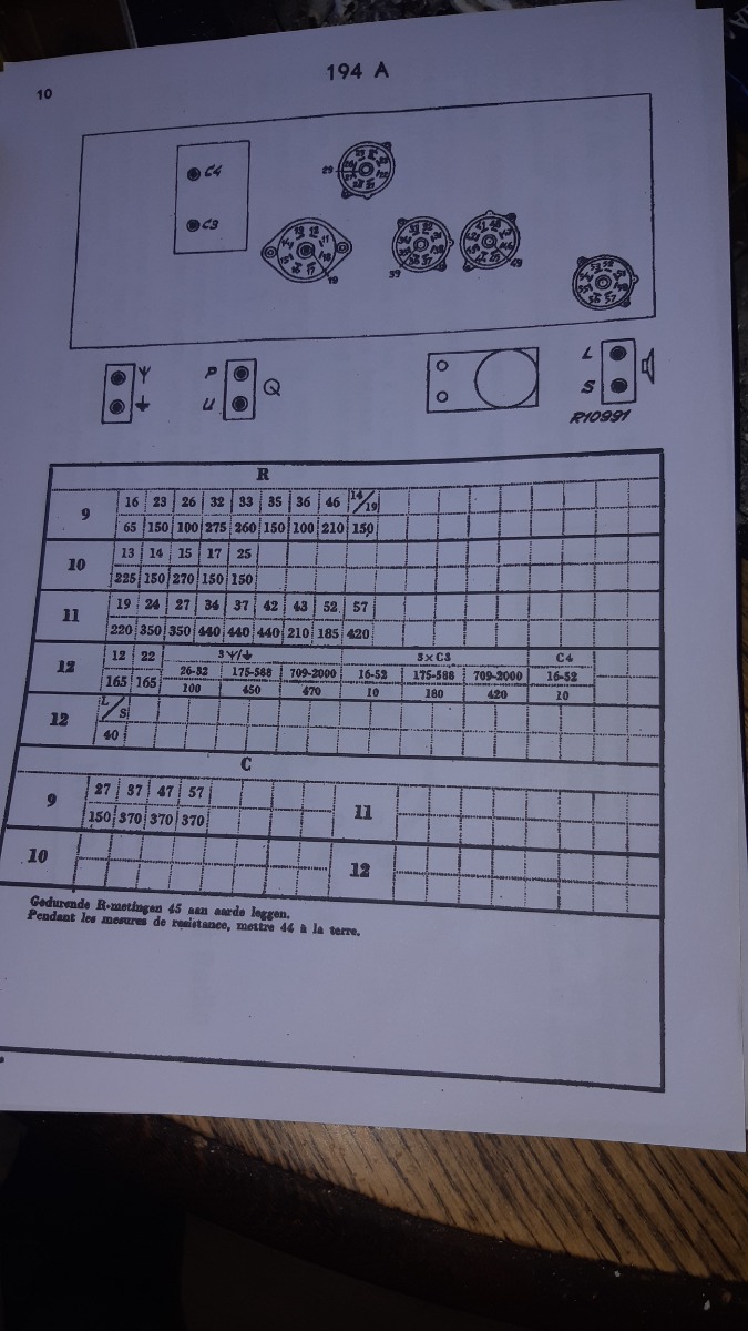 De tabel die je boven het schema ziet zijn weerstand- en capaciteits metingen. Die worden gemeten met het toestel uitgeschakeld.