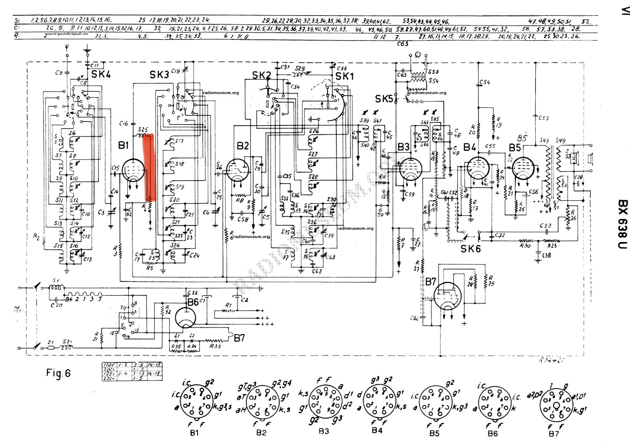 Hoi Allemaal,ik was bezig met de BX638U, af te regelen, en toen klapte ineens de zekering. Na enig zoekwerk kwam ik erachter dat een kant van de afvlak elco was doorgeslagen.Het was ook stom van me, want ik had die afvlak elco’s eigenlijk meteen moeten vervangen toen ik bezig was met al die teer rommel eruit te halen…Maar nu werkt de radio nog steeds niet… Geen ontvangst, de eindtrap werkt wel, maar Ik hoor wel een kleine brom.Nu was ik aan het meten, en toen ik vanaf het chassis punt R4, S29 aantik krijg ik ineens ontvangst? Mijn Fluke heb volgens mij een interne weerstand van 10M ofzo.De radio ligt aan een scheidingstrafo, het chassis ligt aan aarde.Alleen weet ik nu ff niet waar ik het moet zoeken…