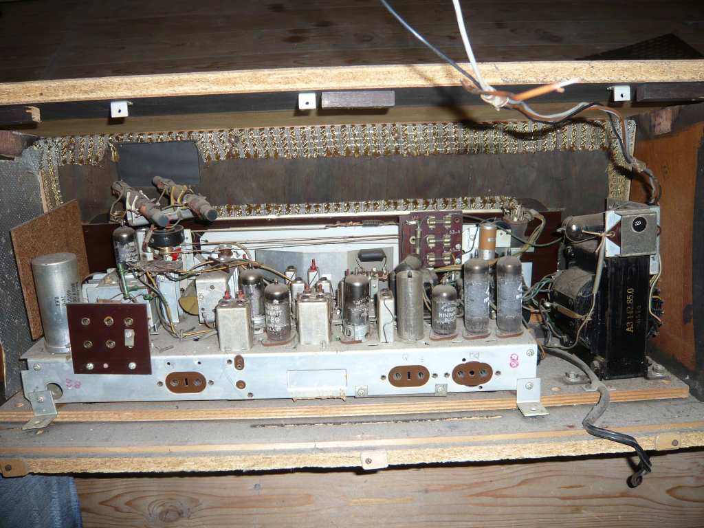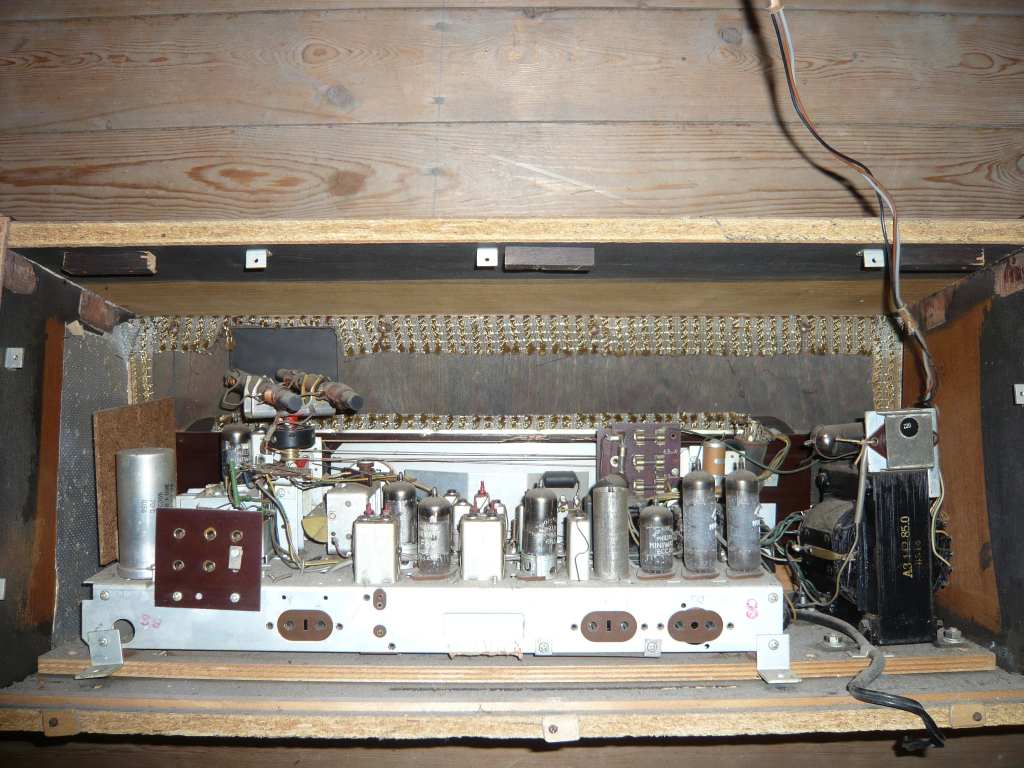 Trouwens : het uit het midden geplaatste chassis lijkt mij wel origineel. Alleen is het met de onderplaat van de bijbehorende radio in de eigenbouw kast gezet..