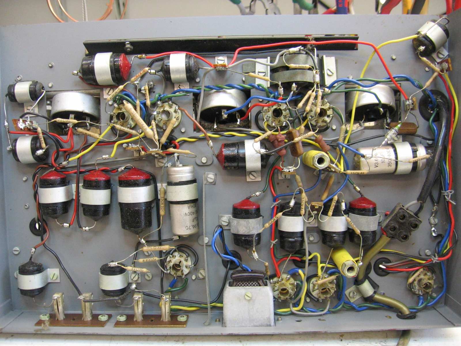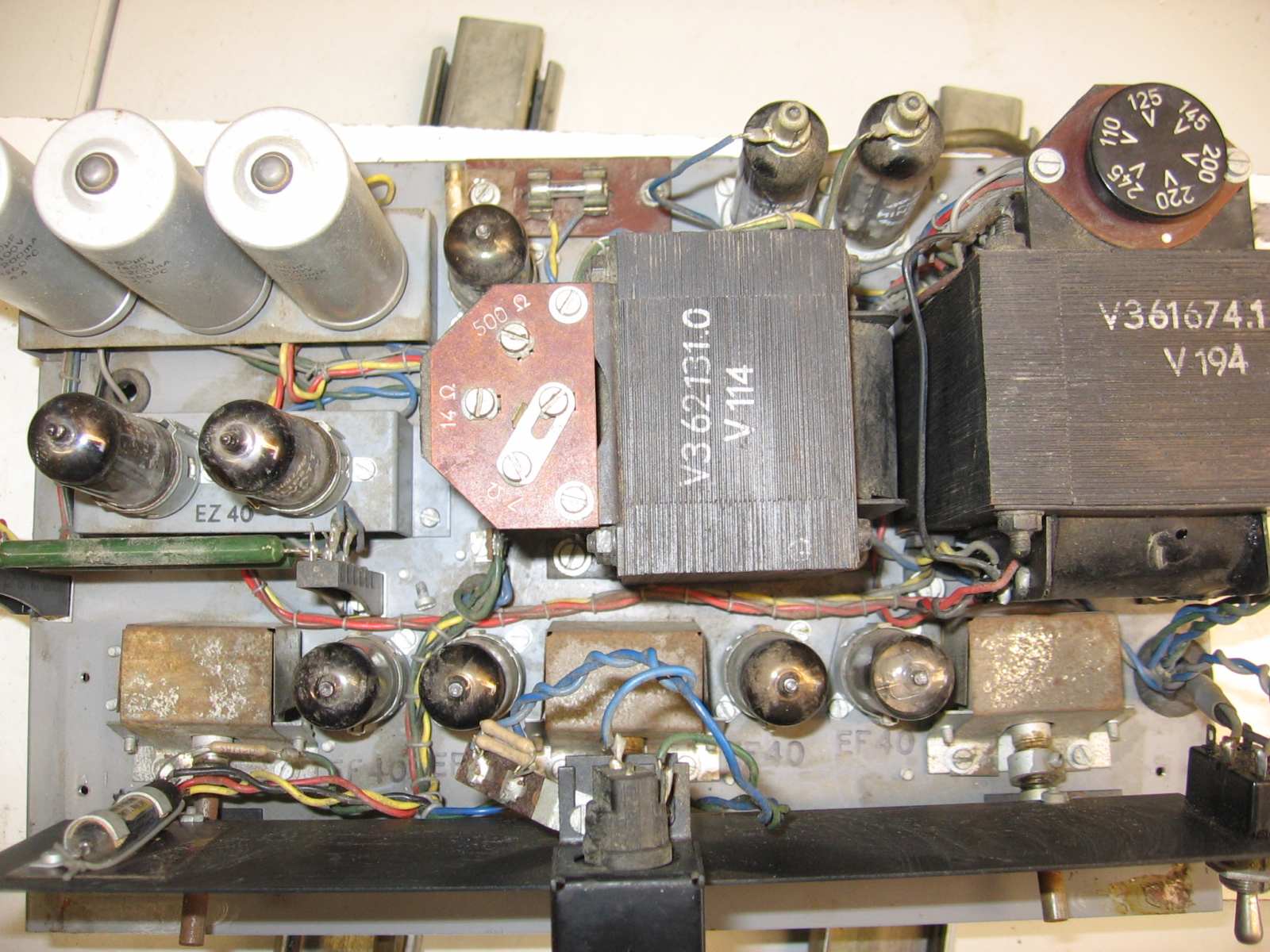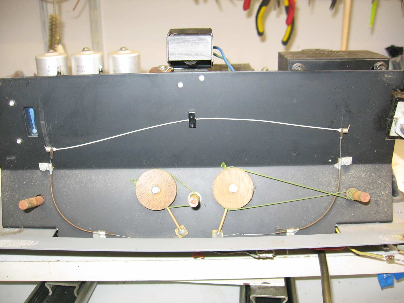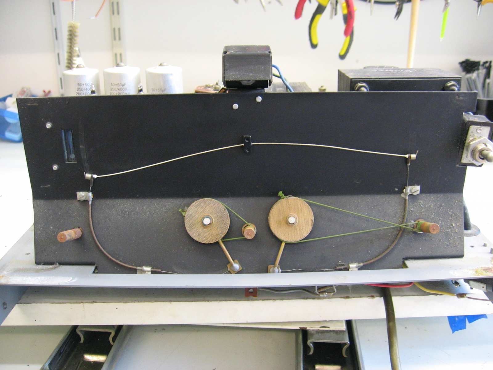 Recent heeft Niels een AG9000 aangeschaft. Deze staat nu op de werkbank. Bijgaand wat foto's van de uitgangs positie. Als eerste de versterker schoonmaken. verder zitten de wieltjes vast van de toonregeling. Dus als eerste de bowdenkabeltjes hersteld. Ik zal het topic regelmatig updaten.