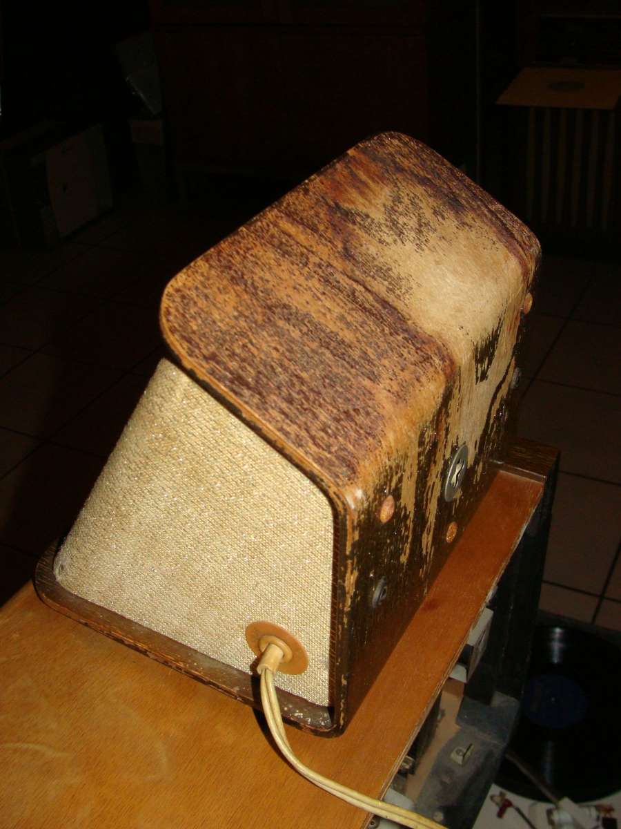 Om de set wat op te pimpen was de eerste eigenaar al aan een aantal zaken begonnen te weten het afbijten van de oude laag van een van de hoge tonen luidsprekers en zo ook had hij al de bekleding van de radio gehaald daar deze er niet strak meer op zat.