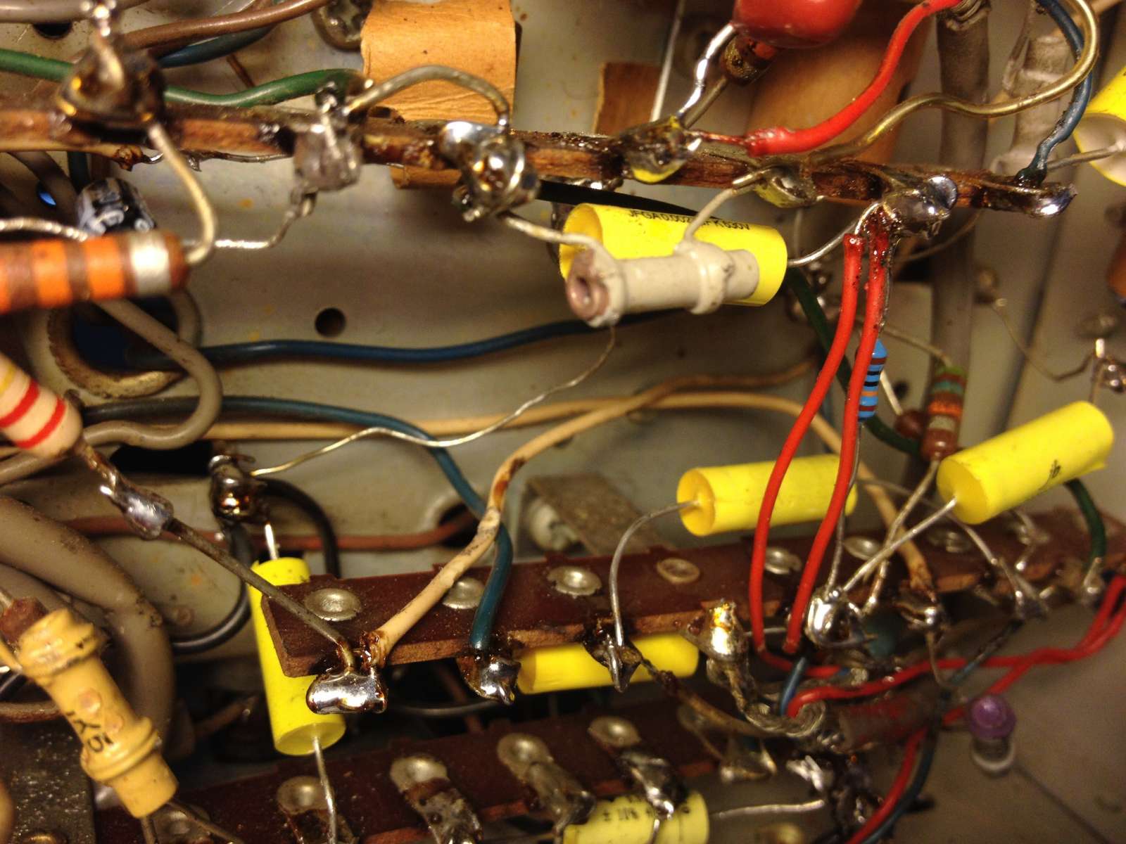 Alle kleine elco's en gele condensators zijn nieuw dus ik ga er van uit dat deze goed zijn.