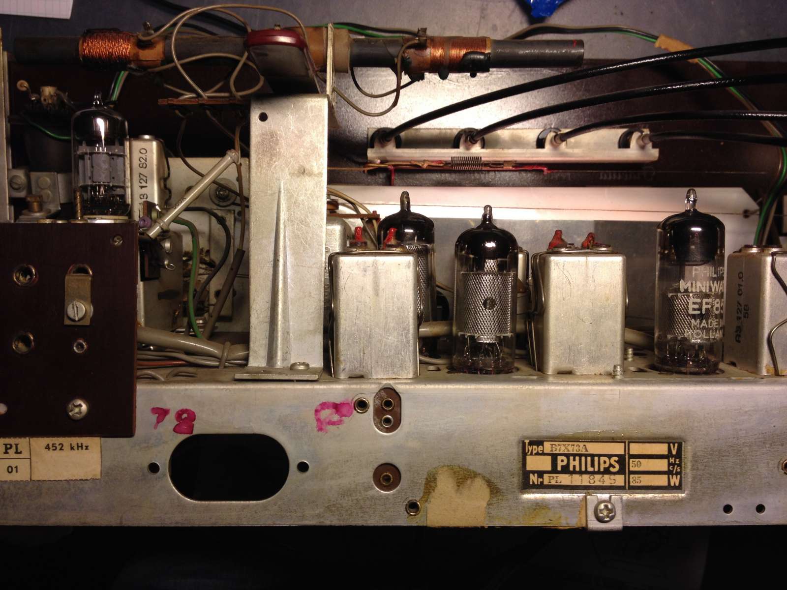 Ik heb de versterker buizen en de gelijkrichter uit een goed werkende radio er in gedaan geeft geen verschil.
