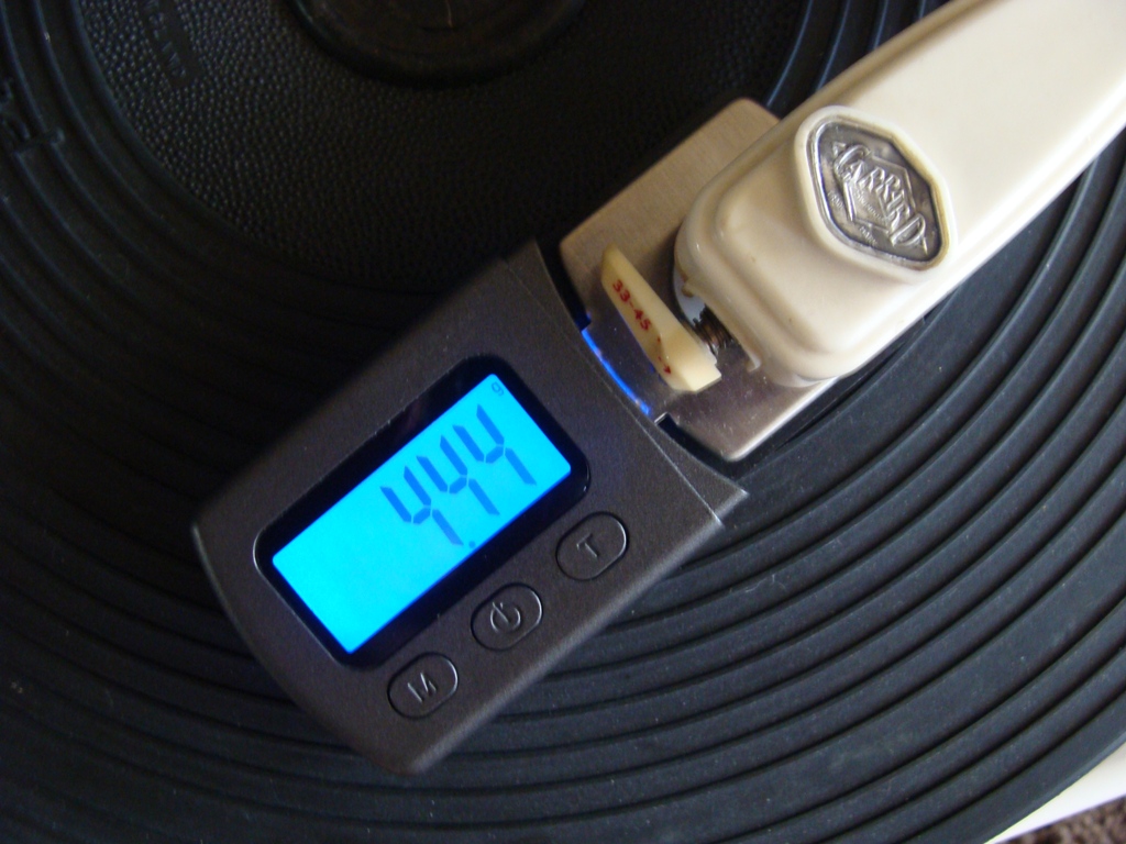 Zojuist even de naaldkracht gemeten en kwam uit op 4,44 gram welke ik nog kon terug regelen naar 3,2 gram.