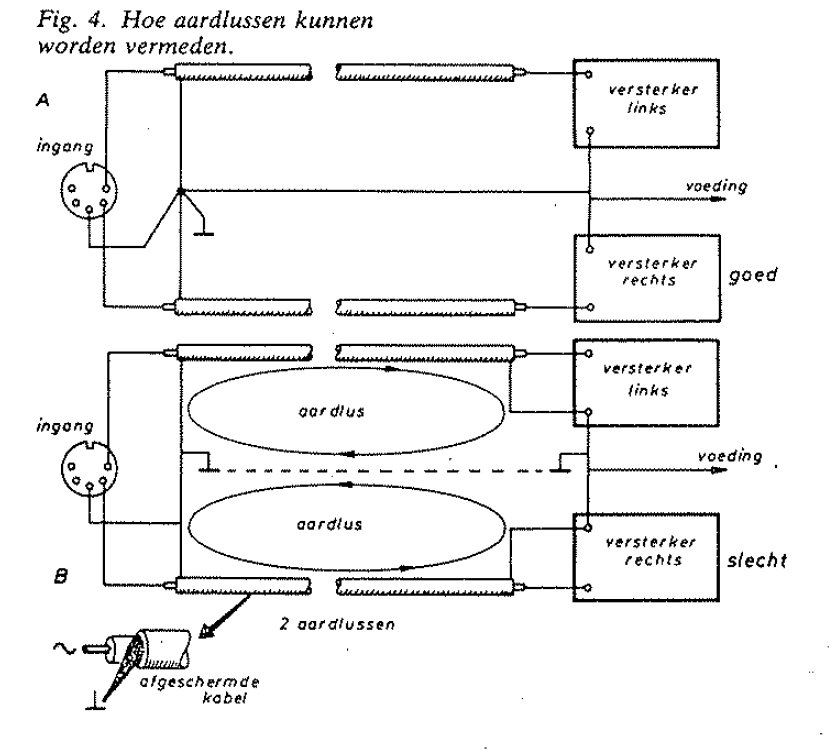 Een ster massa en van elke versterker trap afzonderlijk een massa draad naar de