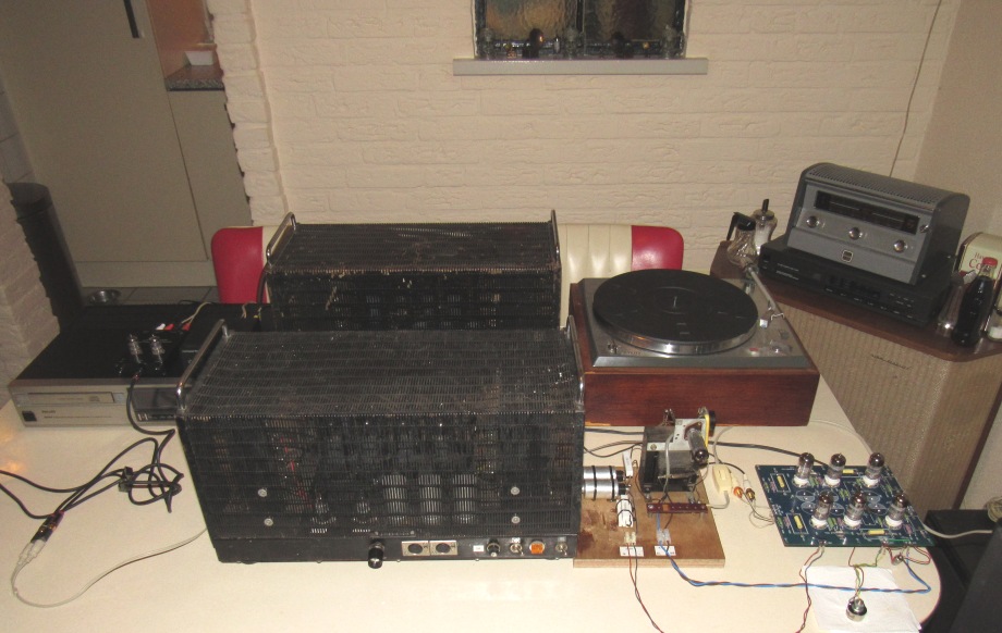 Links daarvan tussen de Multitone M250 een tweede zelf geknutselde voeding met EZ81 voor de Jadis JP200.