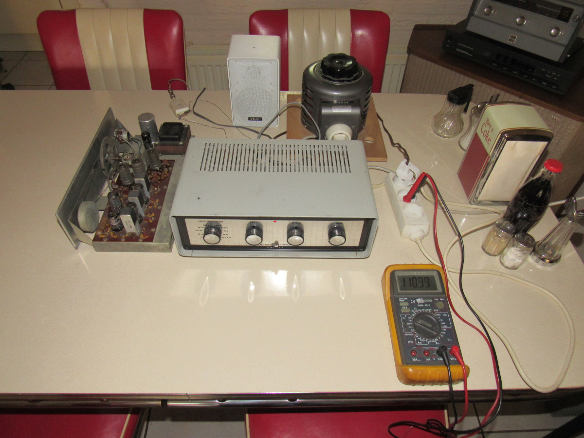 Eerst een optische inspectie gedaan en vervolgens in een slag (de tuner aangesloten op de 110V AC aansluiting van de versterker) in stappen van 15V opgestart.