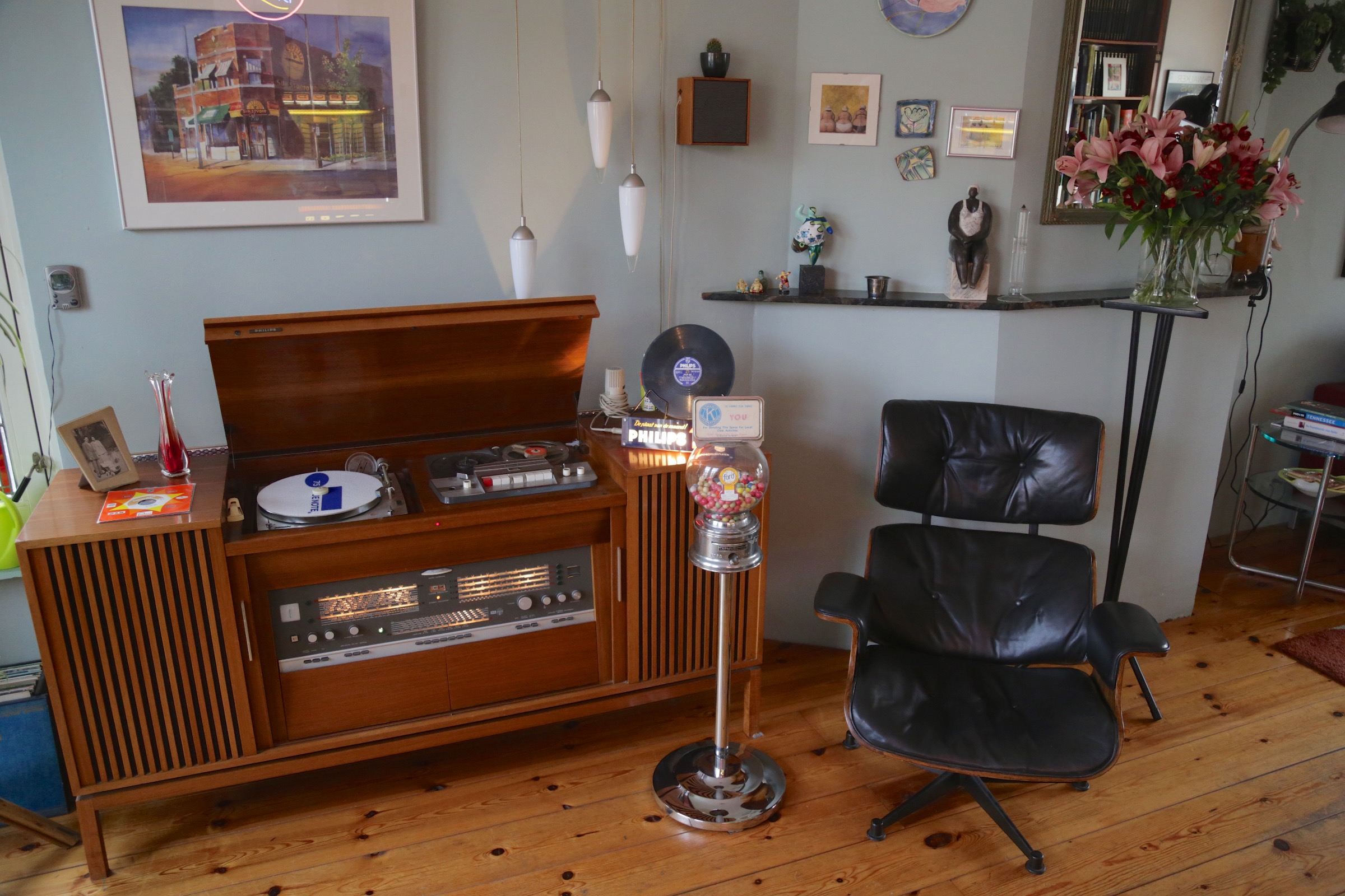 Allereerst gefeliciteerd met jouw mooie aanwinst. Het is niet helemaal mijn verzamelgebied maar dat doet niets af aan de fantastische geluidskwaliteit van dit luxe meubel. Ik heb in 2009 in het radiomuseum in Onstwedde dit fraaie toestel kunnen beluisteren en het klonk werkelijk subliem, heel wat beter dan de doorsnee Philipsen uit die tijd. Volgens de museumeigenaar (met de geruite bloes op de foto) waren er nog vijf van deze meubels in Nederland dus was het een zeldzaamheid dat hij er een had: