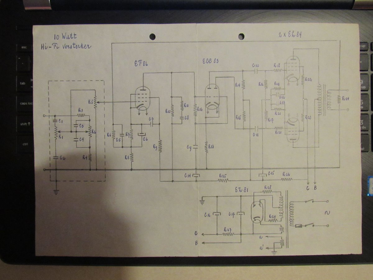 Andere waarden die je niet zomaar aan kan passen zijn: C10/11, R16/17 en de ontkoppel elco's van de eindbuizen. Deze zijn verantwoordelijk voor de stabiliteit voor lage frequenties.