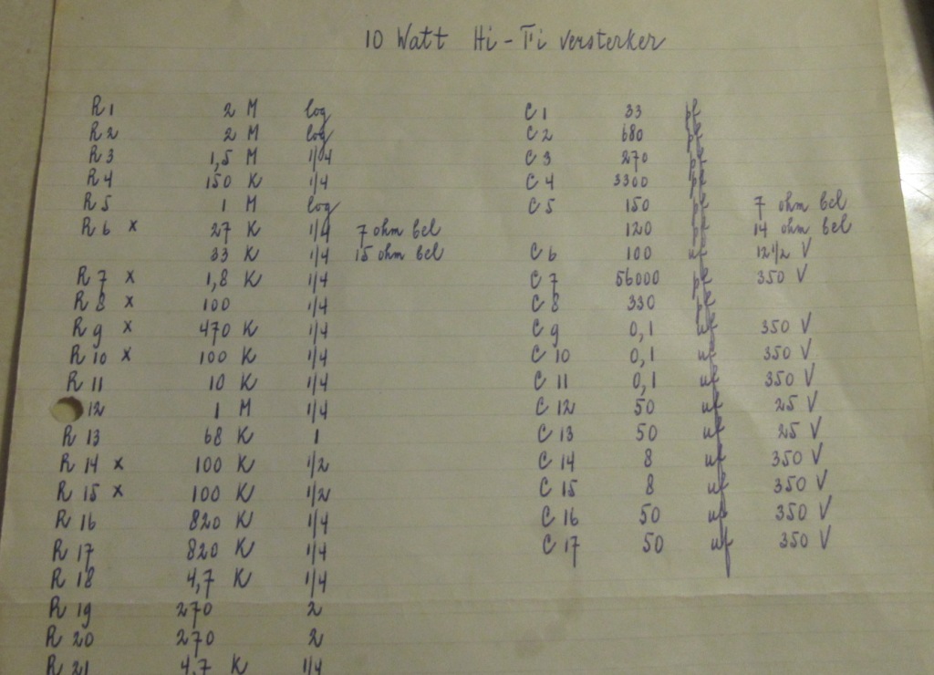 In mijn exemplaar zit er een C5 van 150 PF in echter op de weerstand staat 2.7K5 terwijl de lijst 27K aangeeft foutje in de handgeschreven onderdelenlijst?