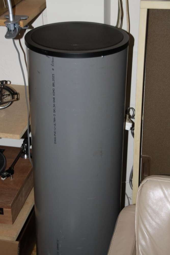 Heb hem aangesloten op een Philips AD9710/800Ohm in een plastic pijp voor de bassen en twee Philips AD3700/800Ohm voor mid en hoog.