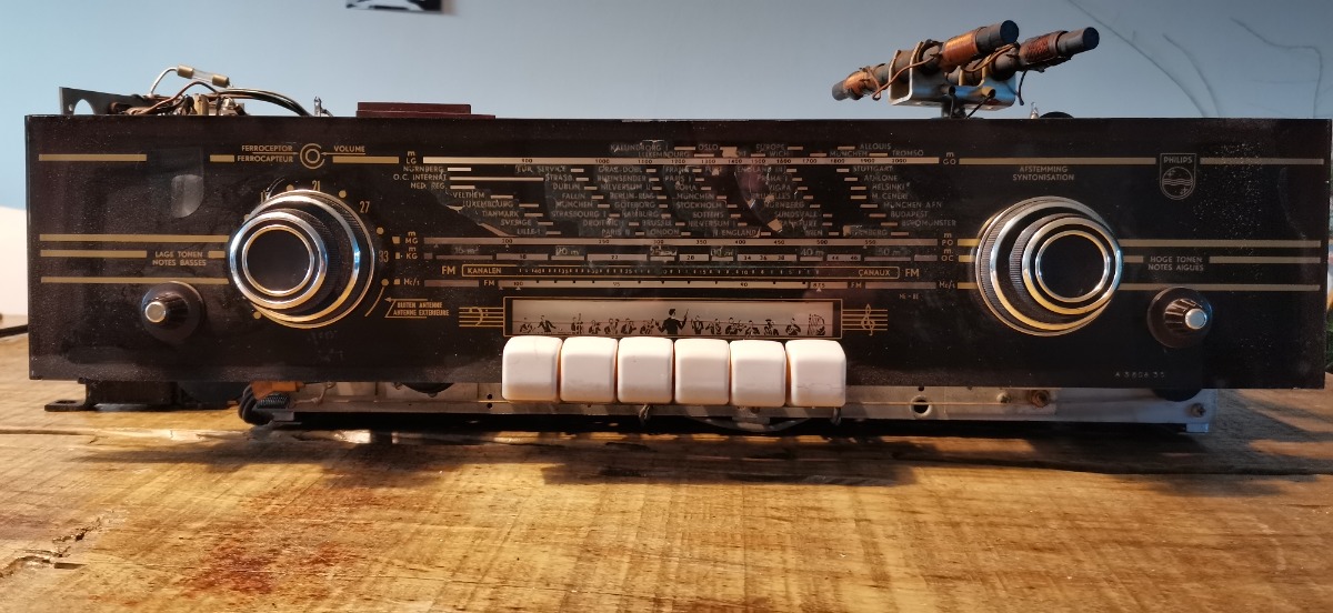 Onlangs een HI-Q B6x62A set gekocht. Hij speelt prime met alle teerknollen er nog in. Natuurlijk wil ik de radio laten restaureren. Het enige optische wat me erg stoort is de schaalplaat. Zonder een goede ga ik niet aan de restauratie beginnen. Heeft iemand nog iets liggen of weet een 2e hand B6x62A te koop.