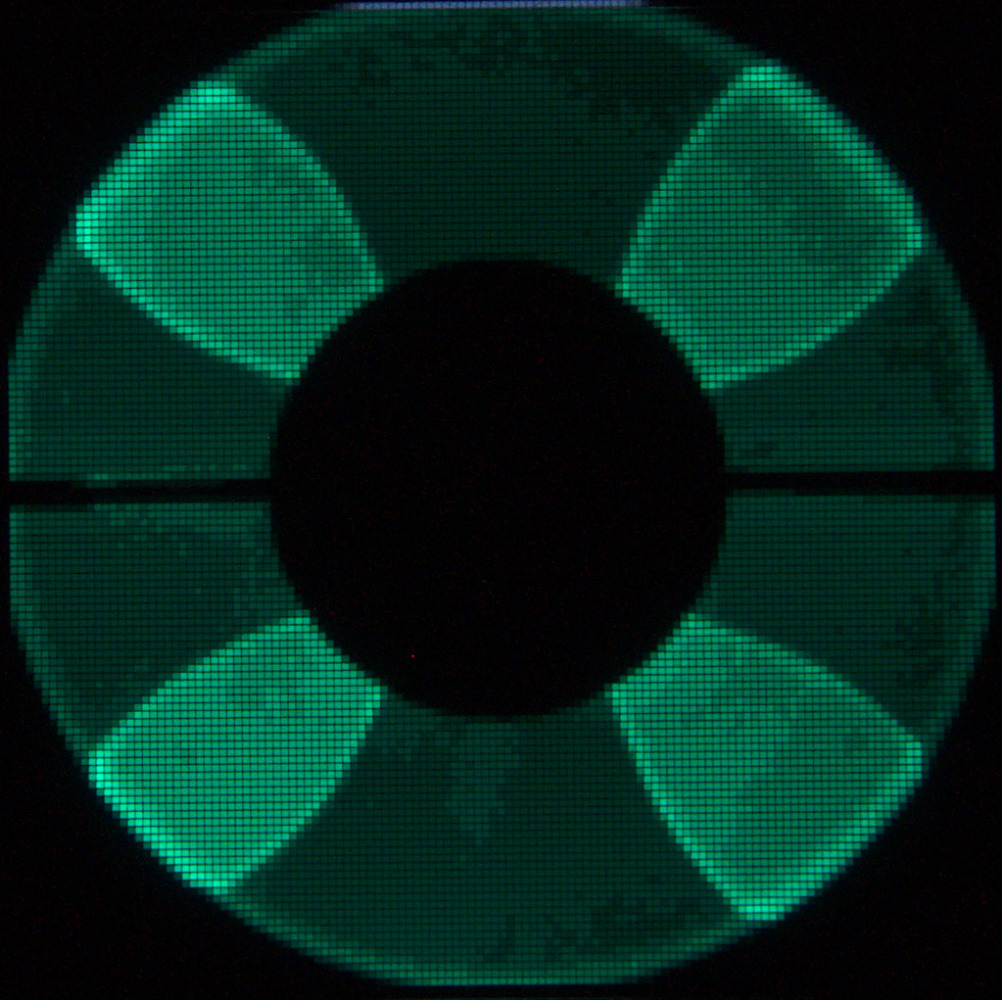 Het zat in de driver. De grijsschaalwaarden moeten worden gedefiniëerd en in de driver gebeurde dat niet goed. Na de 15 waarden te hebben gefixt werd ik beloond met een mooi plaatje: