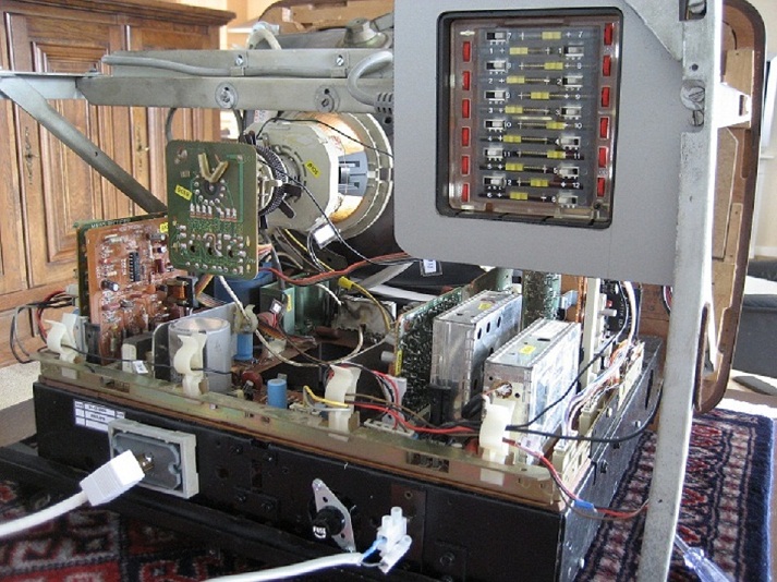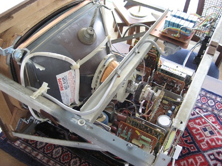 Achter op de beeldbuis voet heb ik een afscherming moeten maken voor hoog spanning storingen weg te halen dat op het beeld te zien was.