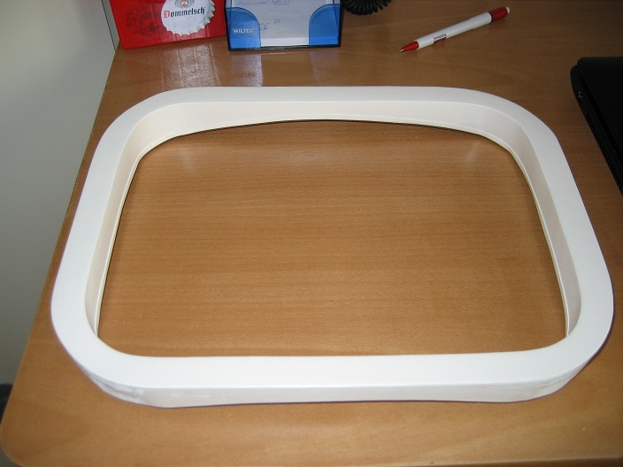 Eerst beeld scherm masker gemaakt van MDF,daarna op de voorkant van de kast gemonteerd.