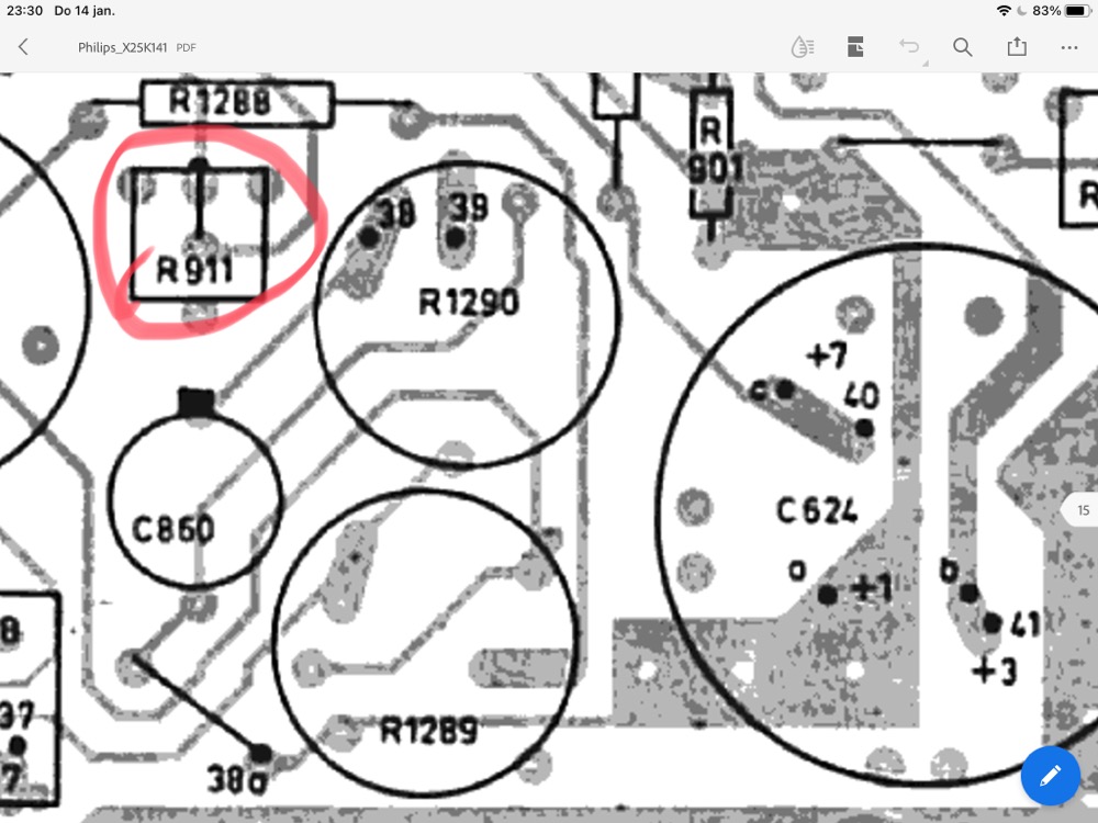 Relais is alleen maar voor de kleurtemperatuur. Die moet hoger (blauwer) zijn voor zwartwit. Misschien staat het 4.433619 MHz kristal ernaast en komt-ie niet goed in lock. De videobuis (luminantie) is de PL802 maar als je contrast goed is hoeft die niet vervangen te worden. En R1290 mag best warm worden, zolang-ie niet rookt kan het wel. Kijk eens in de doc waar die voor is. Zal wel convergentie zijn ofzo.