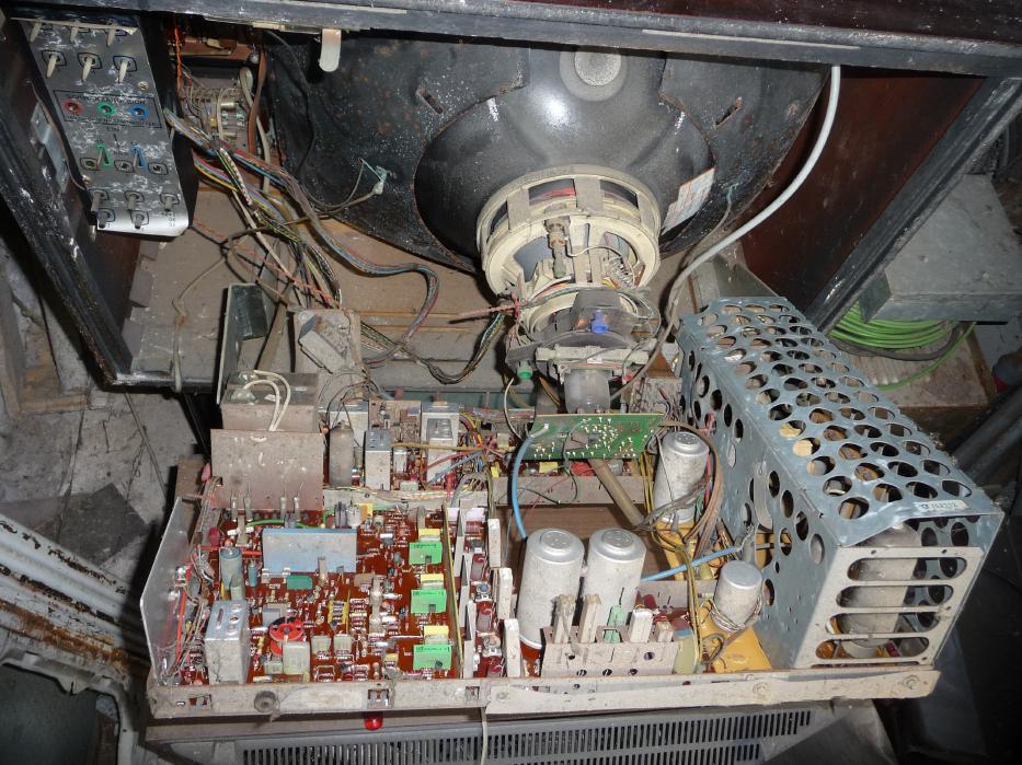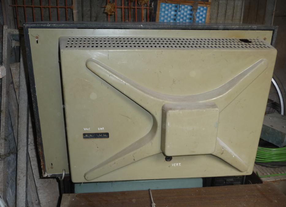 De kast van de KTV is nog in goede staat, enkel kleine verfspatjes bovenop, waarschijnlijk heeft de eigenaar ooit zijn plafond geverfd zonder de TV af te dekken.