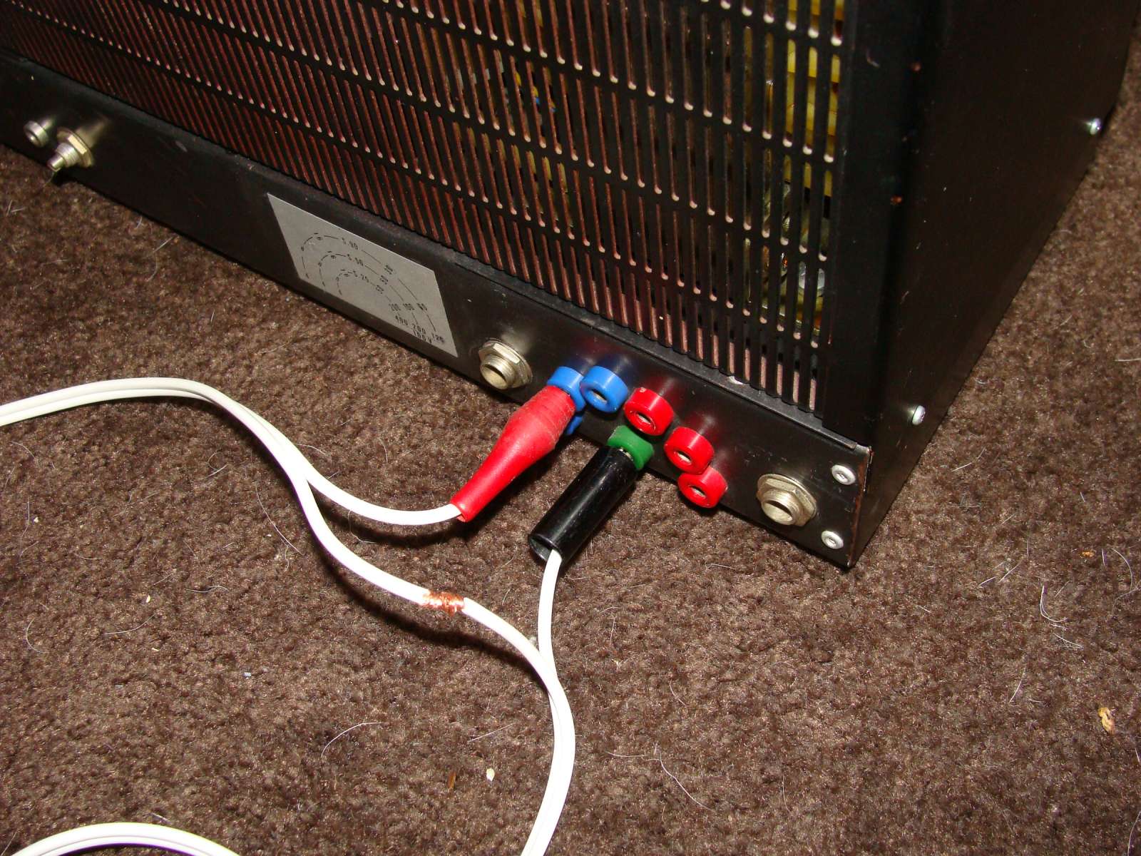 Vanaf de groene aansluitbus liepen twee draden naar de plus aansluiting van de Jacks.