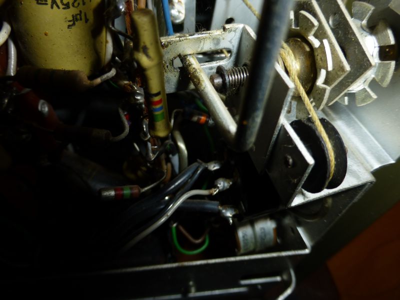 Het mechaniek wat de afstem wijzers schakelt zoals Cees ook al aangaf reinigen en op de as een drupje olie zodat het weer soepel gangbaar wordt.
