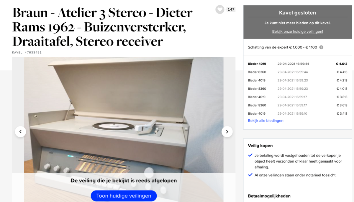 Tja, als Bertus hier al van schrok. Zie de uiteindelijke verkoopprijs. Ex. 9% veilingkosten voor de koper.