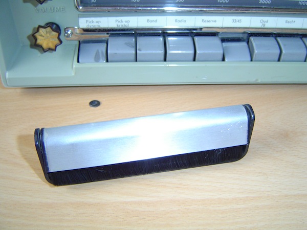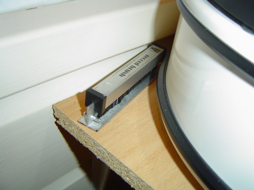 Nou draai ik de laatste jaren niet zoveel platen meer. Maar zo'n borstel staat nog steeds op de draaitafel en wordt dan ook gebruikt.