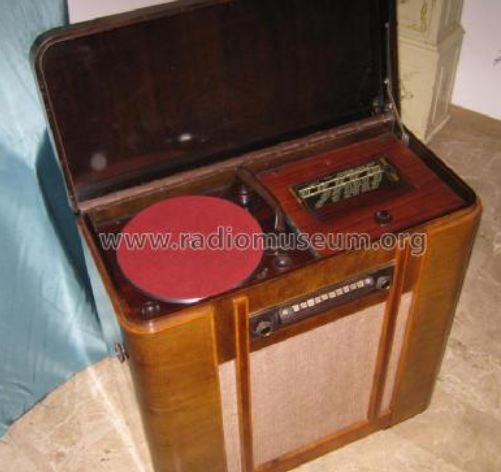 Al is de pick-up niet origineel (wat zeker geen uitzondering is op dit soort vooroorlogse combinaties) is dit verder dus absoluut geen samengeraapt ding! Sterker nog... deze radio is behoorlijk zeldzaam. Notabene met het chassis van de 753A dus met voorkeur-keuze druktoetsen aan de voorzijde!