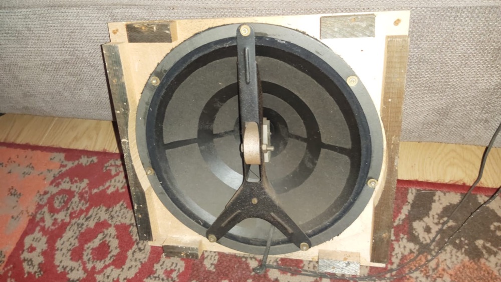 Een vriend van mij kocht in een kringloop een luidsprekerbox met daarop handgeschreven “+/- 1940”. Er zit een nogal bijzondere luidspreker in waarvan de conus de ‘andere kant’ op wijst.