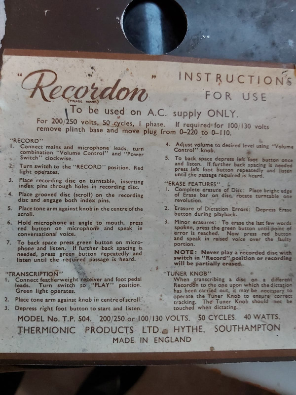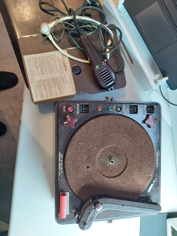 Weliswaar is dit geen ‘normale’ grammofoon, edoch het is een speciale variant hiervan. Feitelijk is het een historisch dicteer apparaat wat met papieren schijven werkt met magnetisch materiaal uit 1948 Misschien dat jullie mij op weg kunnen helpen