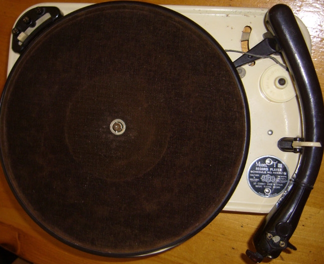 Met 1 hand draaitafel oplichten en de andere hand een tik op de midden as geven.