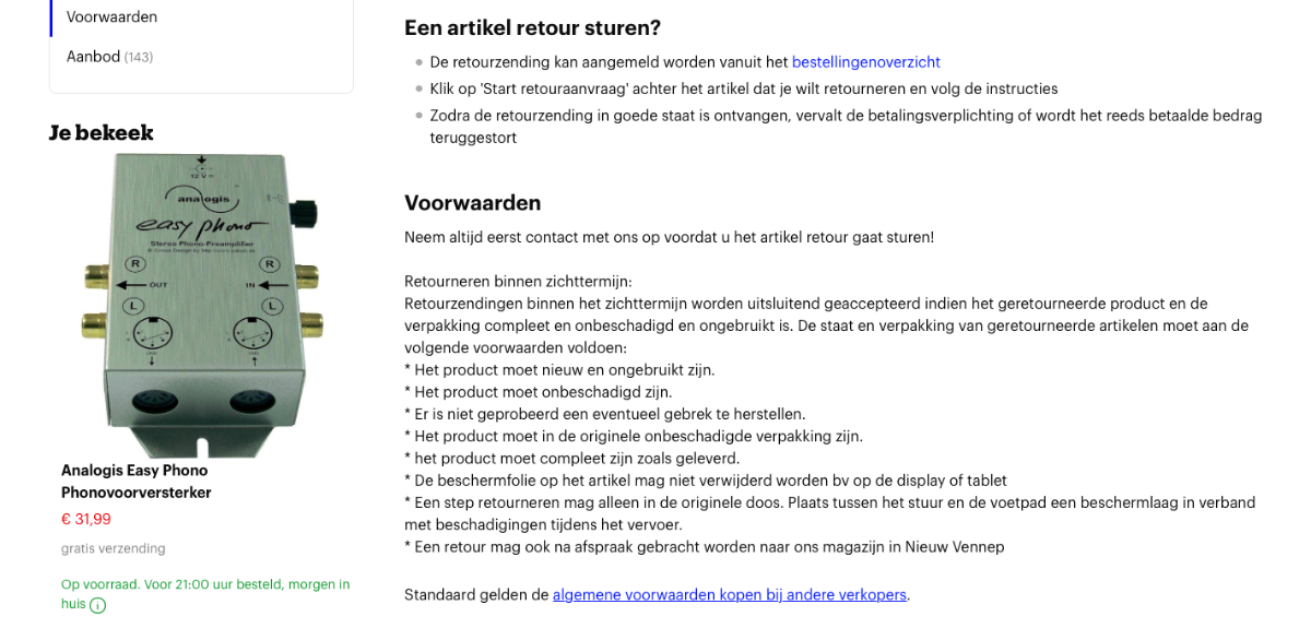 Er zit namelijk de voorwaarde bij dat bij terugsturen de verpakking onbeschadigd moet zijn en dat lukt niet bij deze. Eenmaal uitgepakt ( dat betekend de verpakking kapot maken) mag je hem niet meer terugsturen.
