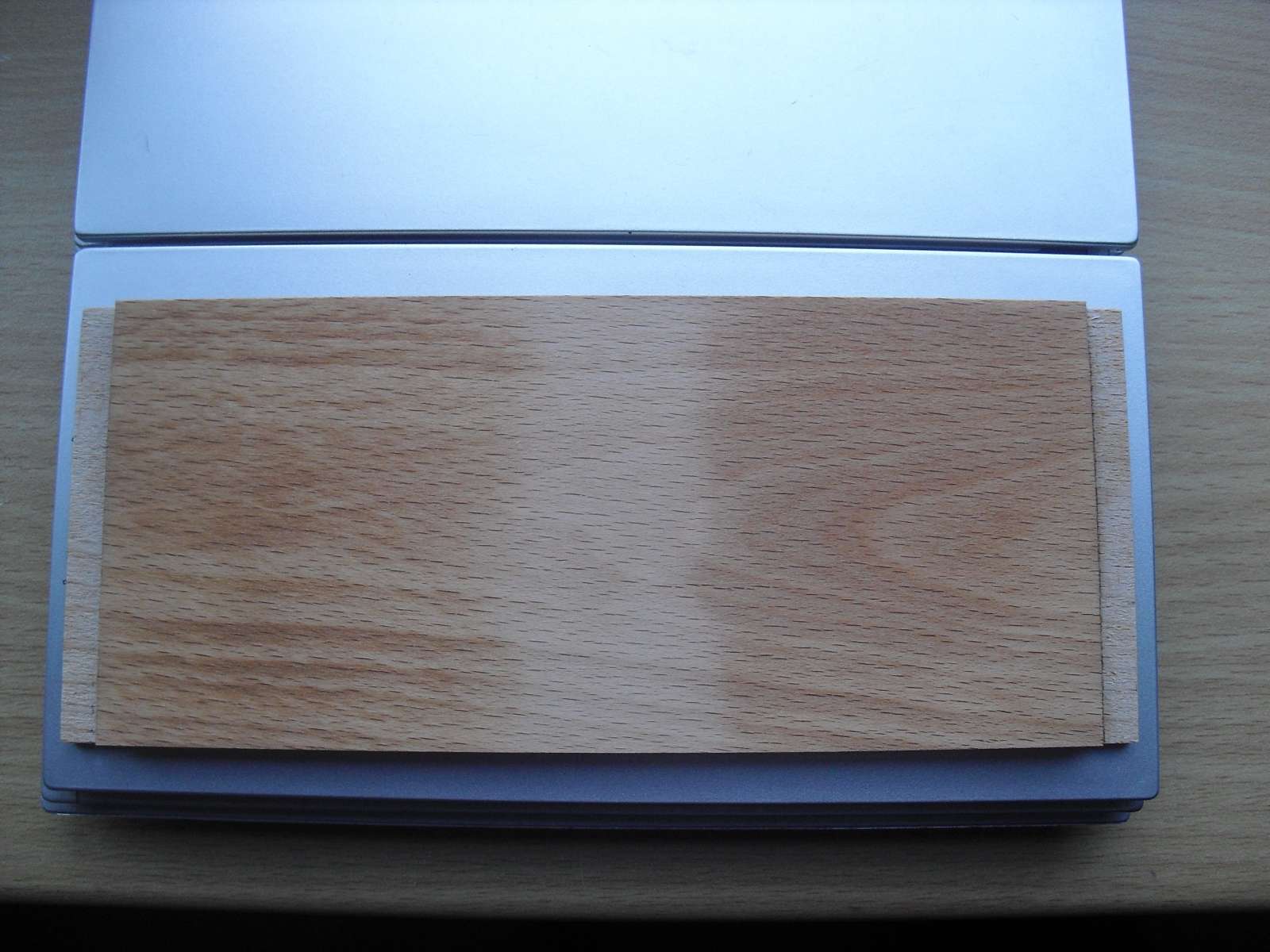 Omdat de plankjes een dikte hebben van 8 mm is de WitteKat wikkel, die ik gemaakt heb 2 mm te klein, maar er is wat mee te schuiven dus dat komt wel goed. Anders moet ik de wikkel iets vergroten.