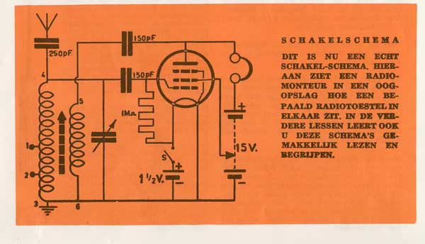 Ook zie je dat de stroomkring door de weerstand gesloten is. De spoel geeft de ontvangen en afgestemde hoogfrequente draaggolf door via de condensator naar het stuurrooster van de buis. Door de weerstand loopt er ook een minuscule stroom door deze weerstand, over de weerstand staat dus een hoogfrequente spanning waarin zich de audio, de laag frequente, is in opgeslagen.
