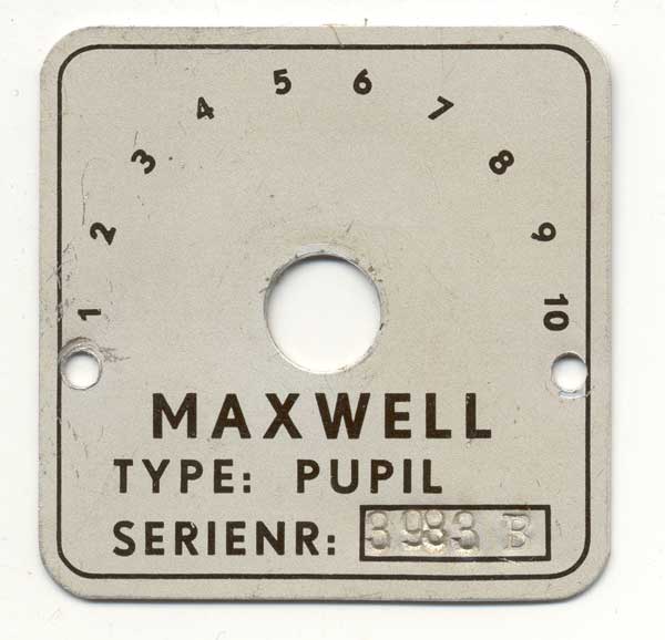 Maxwell is heel simpel begonnen met de Pupil, er was een enorme schaarste aan materiaal en er werd in de beginperiode gebruik gemaakt van bestaande onderdelen. Een complete frontplaat maken was te duur, dus maakte mer van een soort sigarenkistje de kast van de radio en zette er een schaal op van Amroh of een andere leverancier. Die dingen hadden dus 270 graden schalen. De eerste poging van Maxwell was zo'n schaaltje van eigen ontwerp.