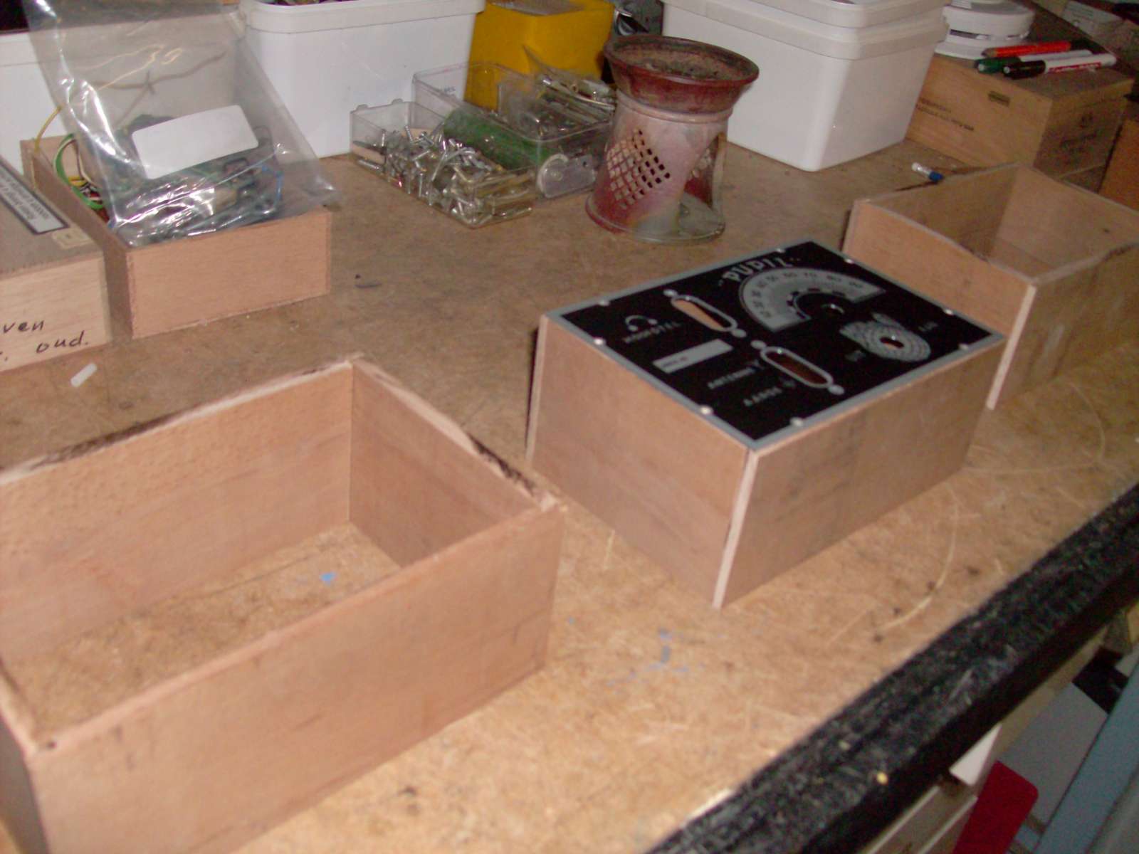 Ik had al een kartonnen bakje gemaakt van 50 mm breed want ik heb veel batterijhouders voor 6 AA batterijen dus die wilde ik daarin kwijt. Er kunnen er 3 in en dat brengt de anode spanning op 27 Volt