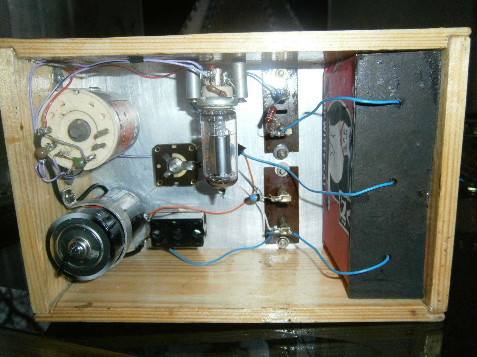 Toen maar een laagohmige koptelefoon ocver de weerstand aangesloten en het toestel speelt zoals hij vroeger nooit gespeeld heeft(verschil 18-54 volt anodespannig).Radio 5 knettert het uit. Nu nog een aangepaste koptelefoon en de kerstmuziek komt uit de Pupil.Wat een hobby