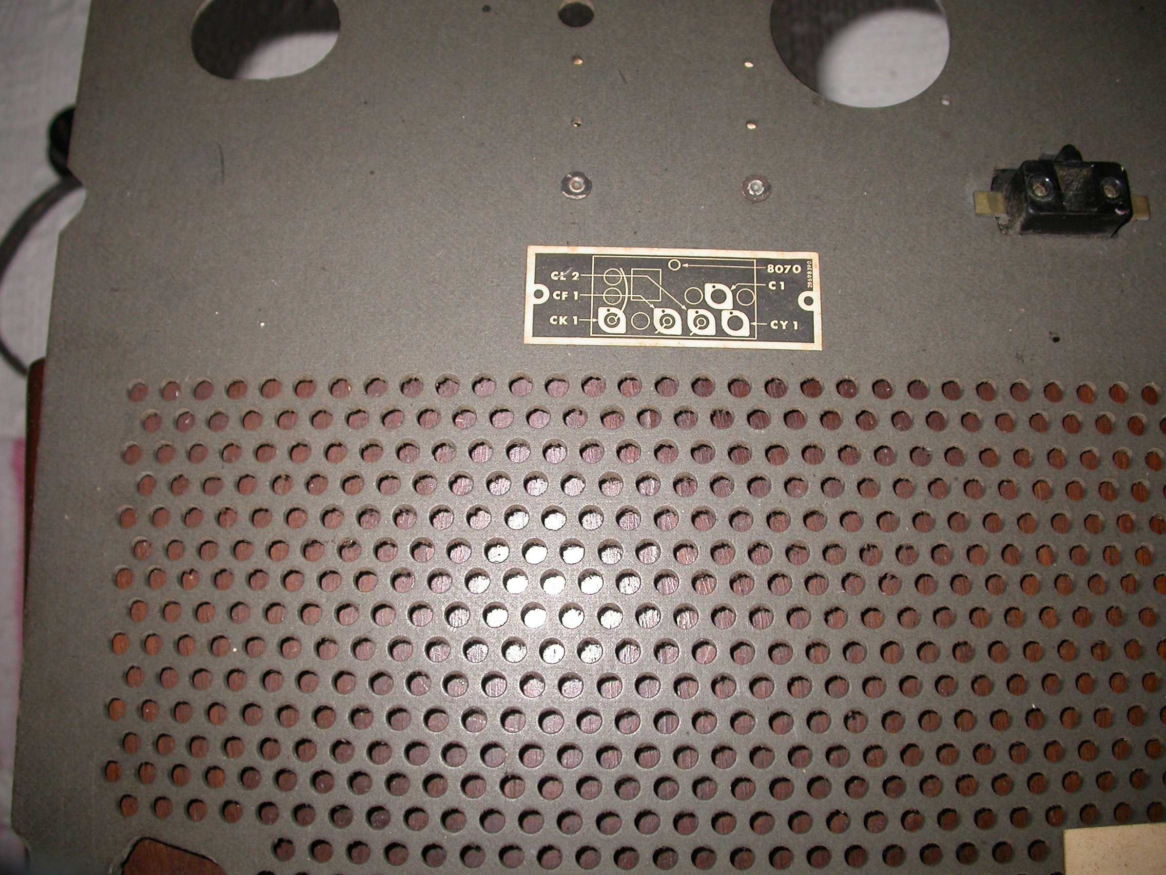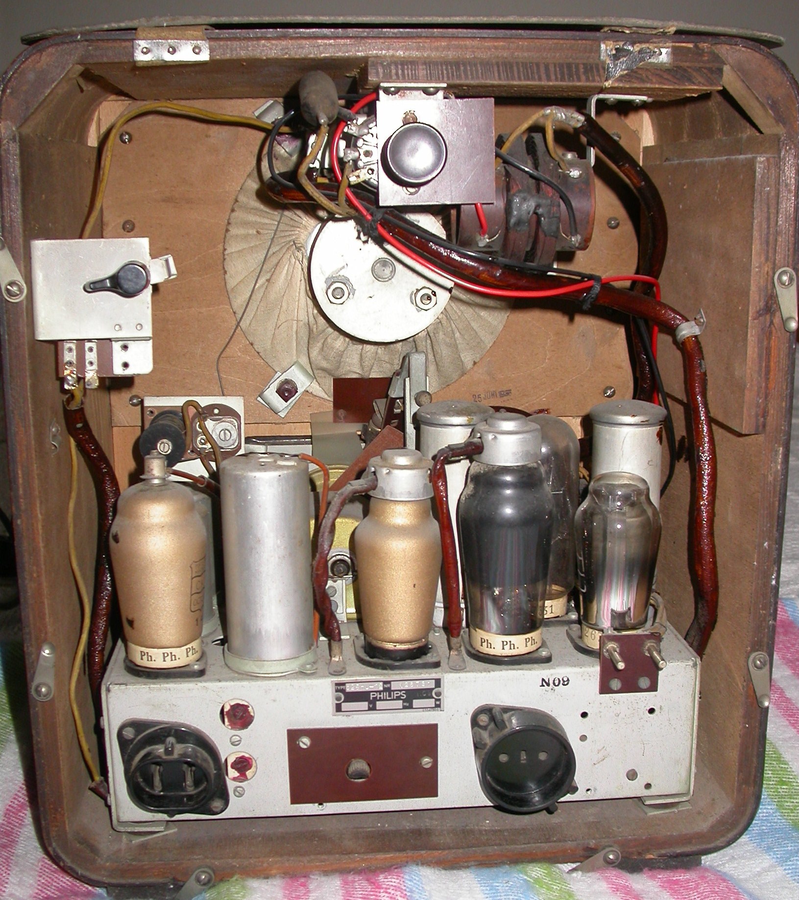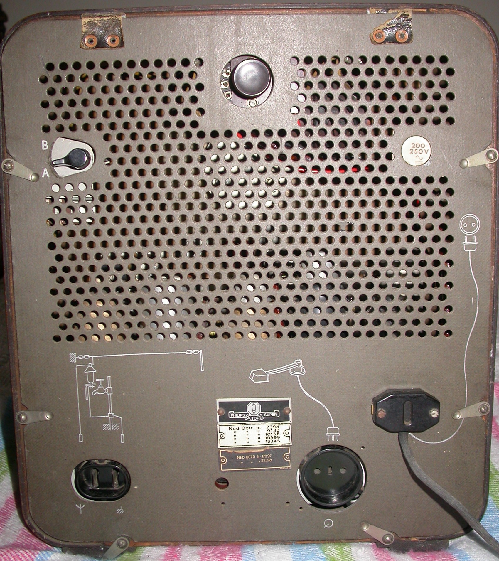 Een deel van de onderzijde van een Philips radio van voor WO II