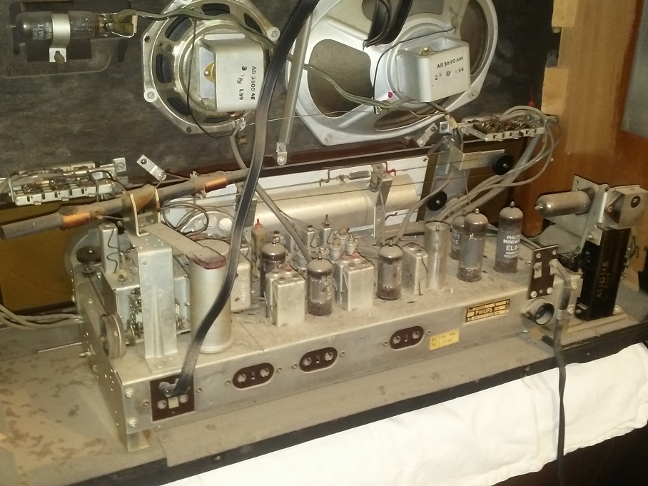 Verder zie ik een chassisdeel doorlopen onder de voedingstrafo.