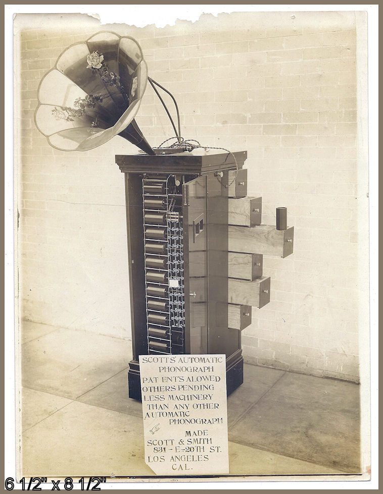 ik weet totaal niets van deze phono behalve dan dat deze scott's autamatic phonograph heet en dat het een 2 minuten was cylinder wisselaar is