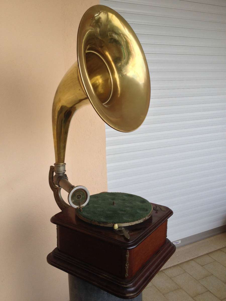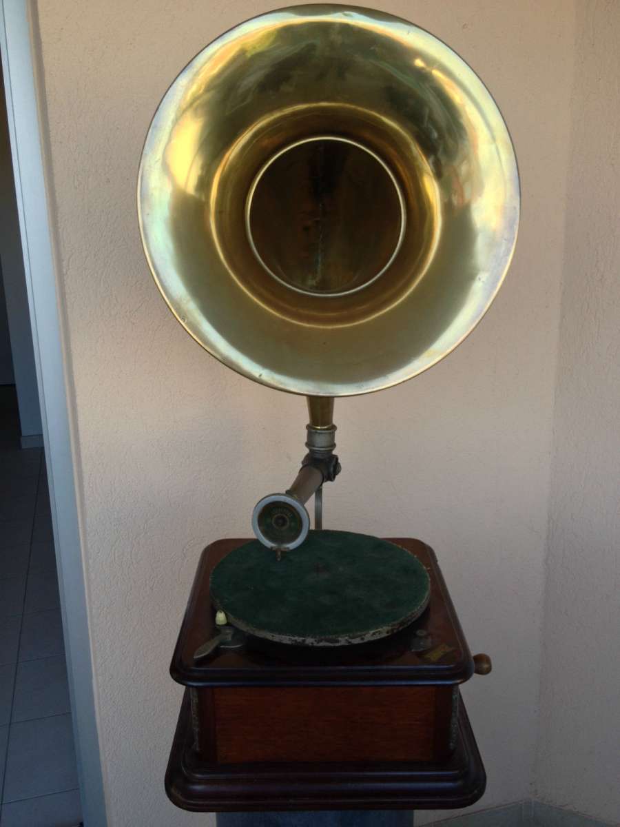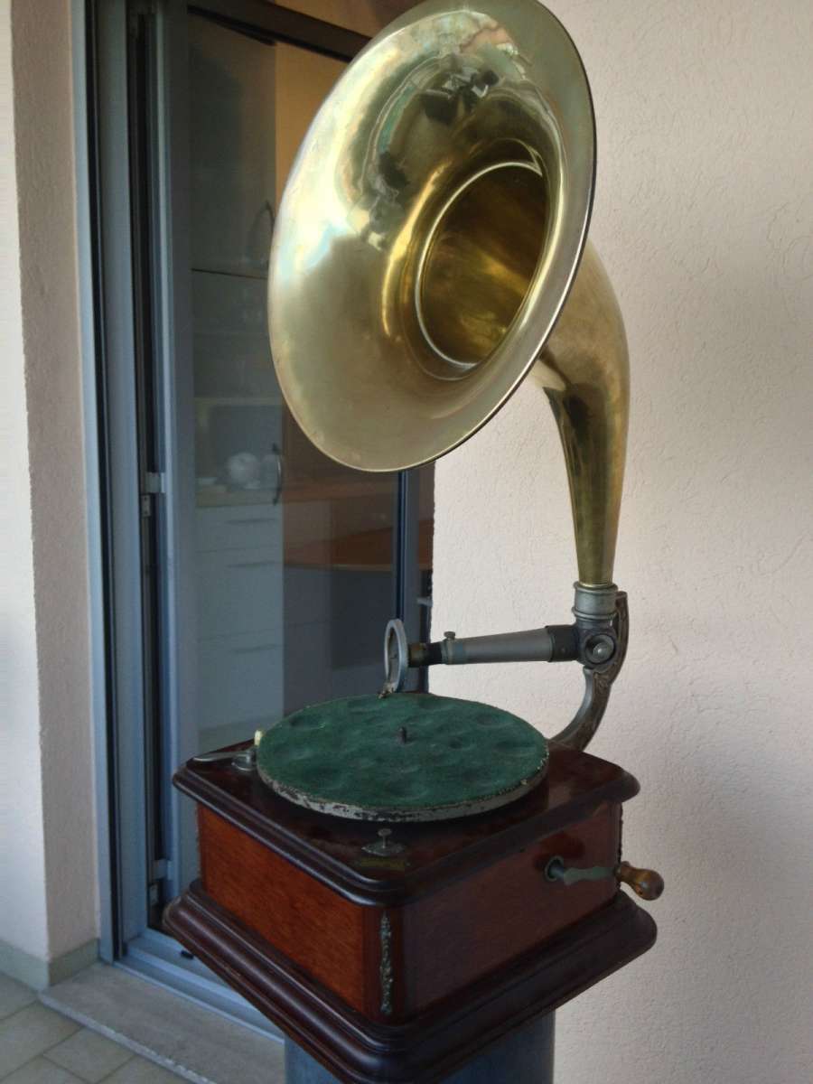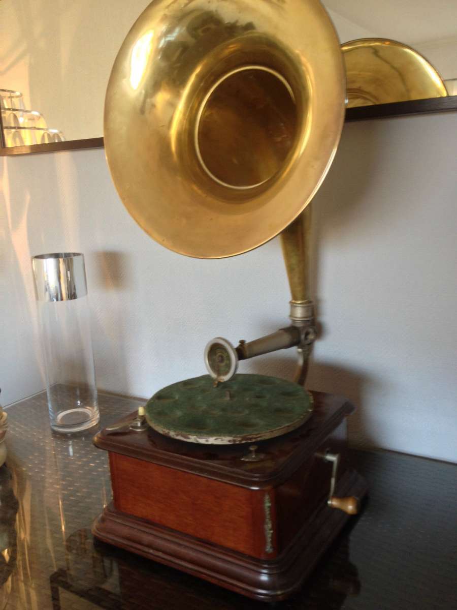 dit is absoluut de meest zeldzame grammofoon in al mijn jaren als verzamelaar ben ik er nog nooit eentje tegen gekomen ook op het internet waren er nooit foto's of info over en van te vinden ik kende aleen de platen (ook zeer zeldzaam maar niet onmogelijk onvindbaar)en een enkele advertentie tevens ondekte ik een exemplaar in de collecie van patrick de caluwe echter erg kapot