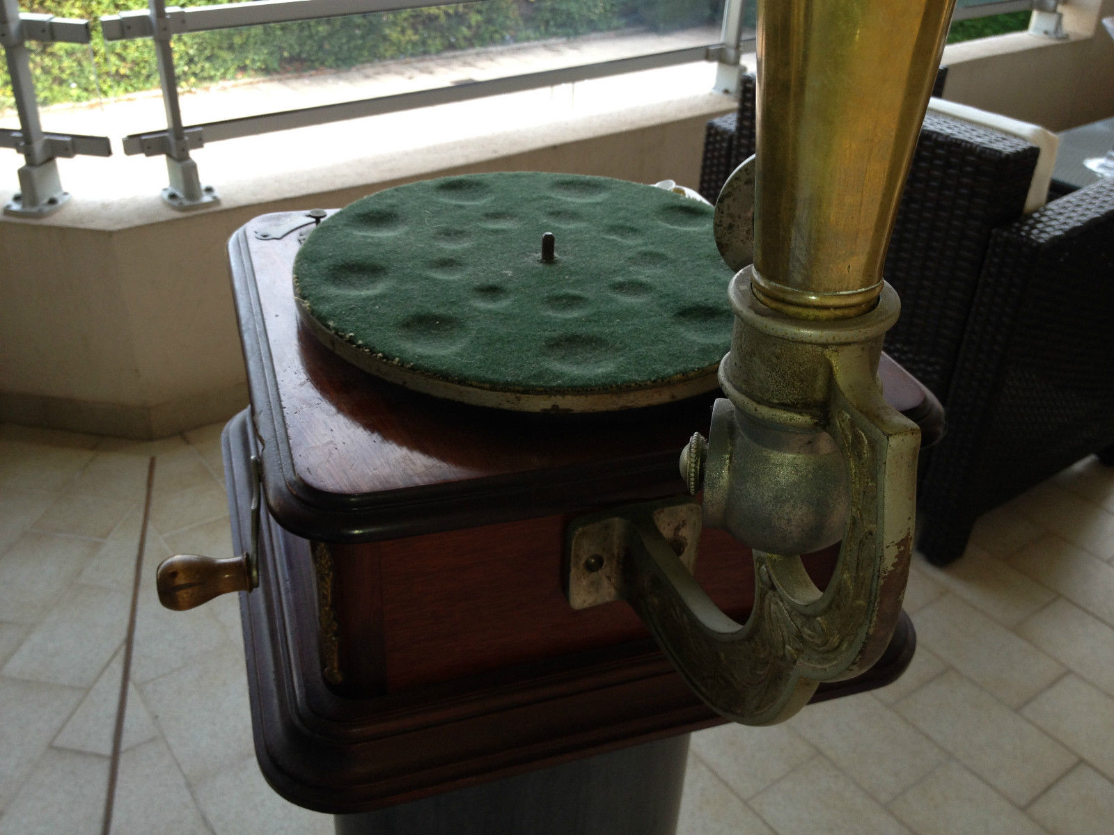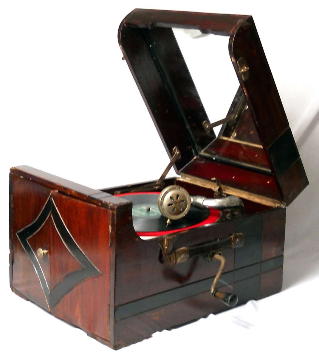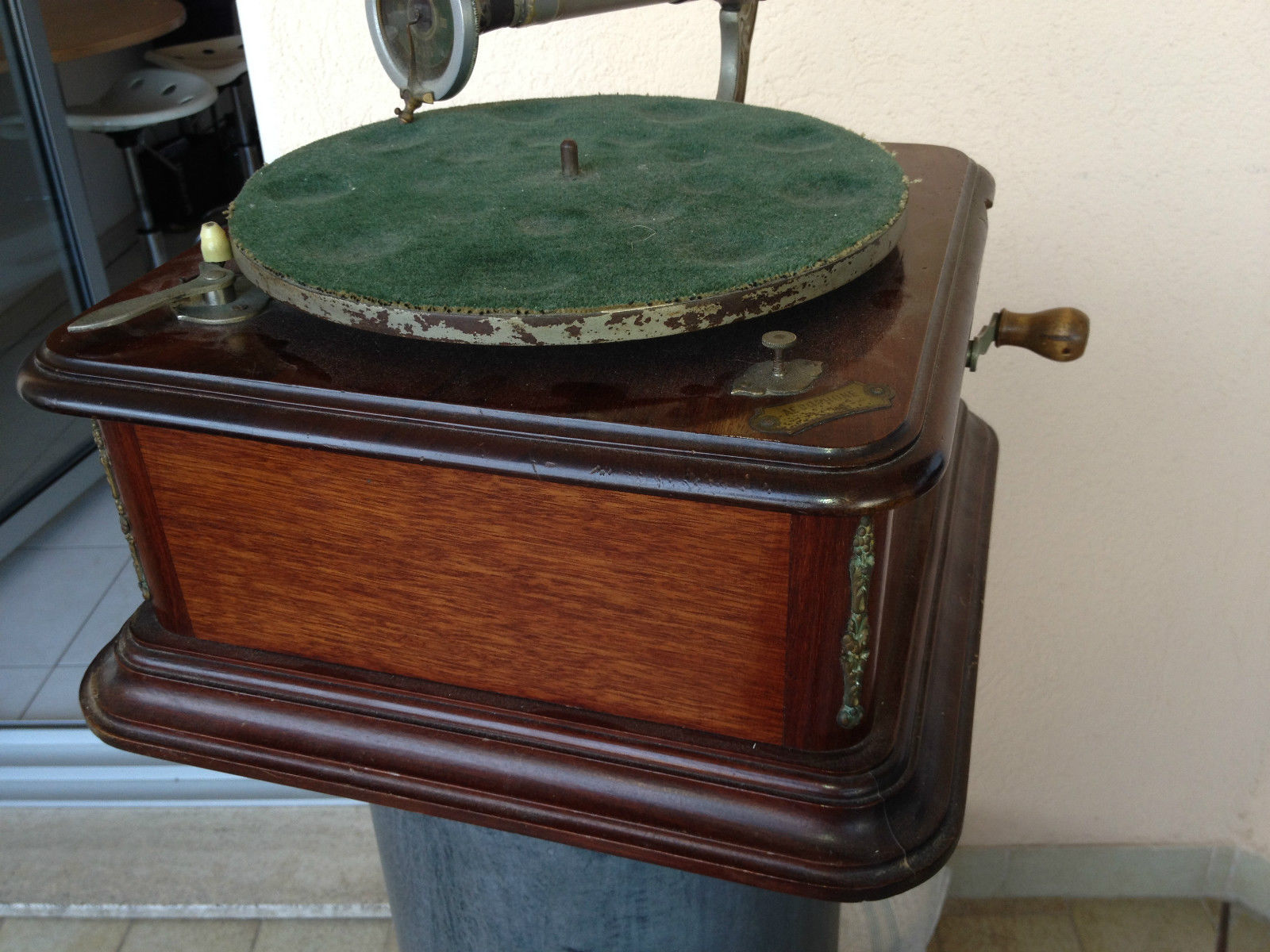 dit is absoluut de meest zeldzame grammofoon in al mijn jaren als verzamelaar ben ik er nog nooit eentje tegen gekomen ook op het internet waren er nooit foto's of info over en van te vinden ik kende aleen de platen (ook zeer zeldzaam maar niet onmogelijk onvindbaar)en een enkele advertentie tevens ondekte ik een exemplaar in de collecie van patrick de caluwe echter erg kapot
