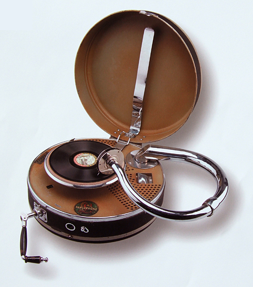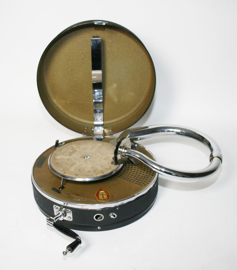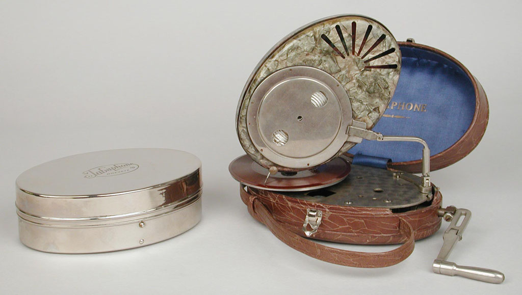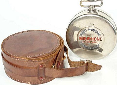 deze vreemde phono is het prototype van de meer bekende mikiphone pocket phonograph