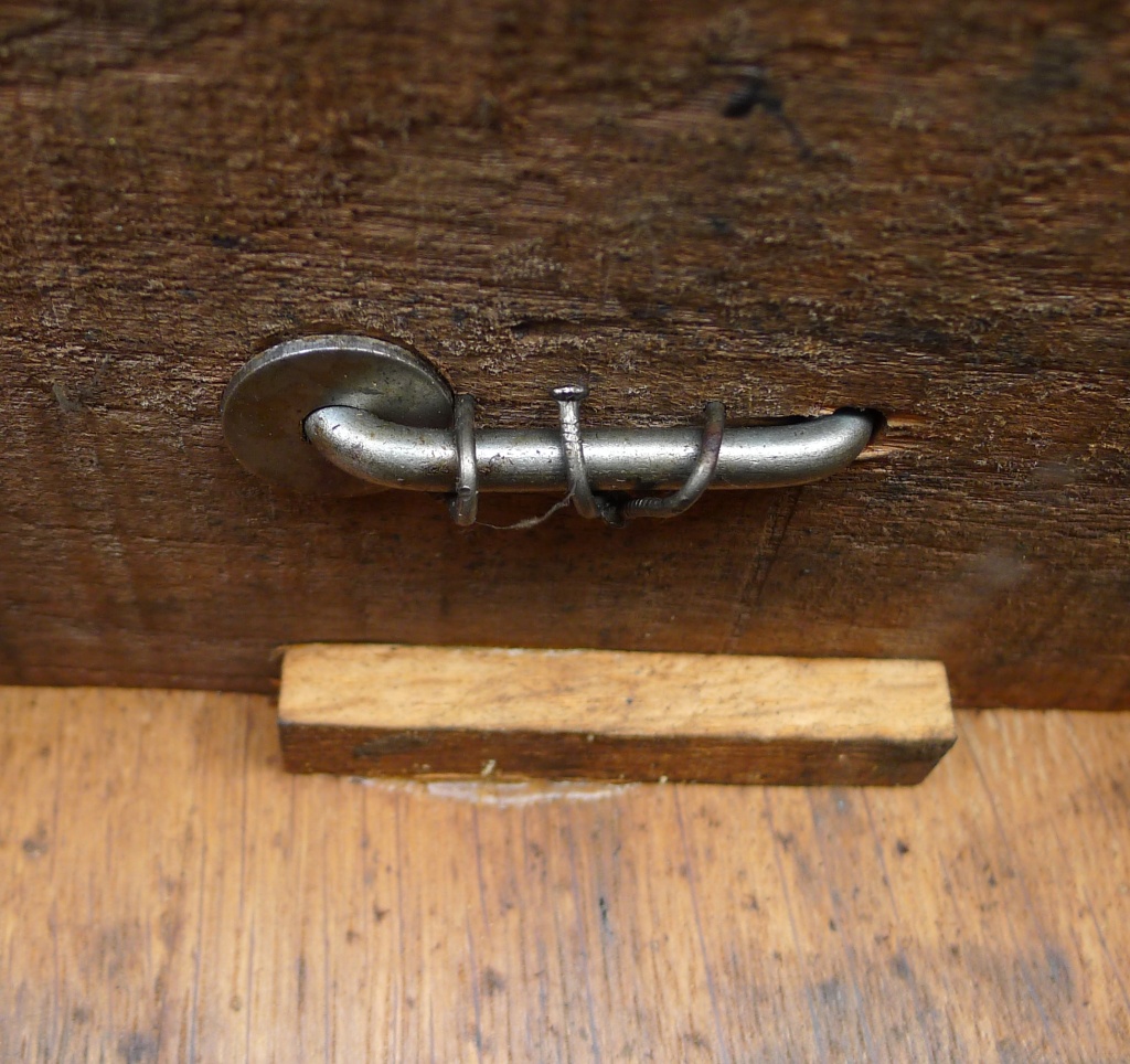 Dat was inderdaad het belangrijkste detail waar ik door ging twijfelen, maar naast de 3 ontbrekende latjes (die er zo te zien inderdaad wel gezeten hebben), twijfel ik nogal aan het spijkerwerk (scheve spijkertjes die half uit het hout steken en het draadeinde waarmee de arm vastzit is met 3 kromme spijkertjes bevestigd). Ik ga ervan uit dat Tino toch wel meer van die dingen gezien heeft dus voor mij nu gerede twijfel dat hij toch origineel kan zijn. Ik hou hem nog eventjes vast, of ik zet hem toch in Driebergen op de kraam zonder prijs als gespreksstof.