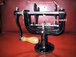 ps ik heb net een dergelijk apparaat als hieronder gekocht van een bevriende amerikaanse verzamelaar het is een apparaat om veeren op te winden er ziten tevens houders bij met een druk systeem zodat je hem in opgewonden toestand zo in de veertrommel kan drukken ha! nee! voor mij geen sneetjes in den vingers meer het ding kost mij bijna 2x zoveel als hij waard is met porto en douane kosten maar dat verdiend hij dik terug!! met dit ding kun je ook de veer verwijderen uit de veerpot en ik heb hem dan in 30 seconden er weer in!! joepie!!