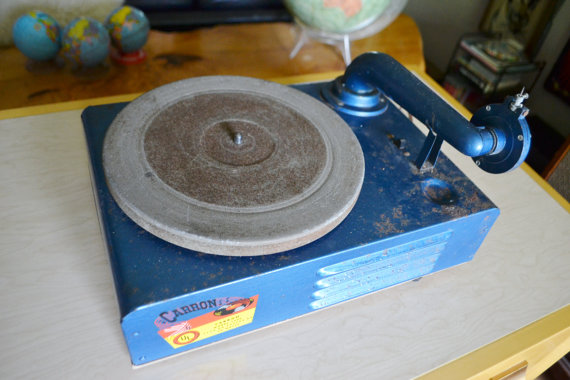 33 toeren lp's weergeven met accoustisch plastic weergever met stalen naalden! Zal een succes zijn geweest...