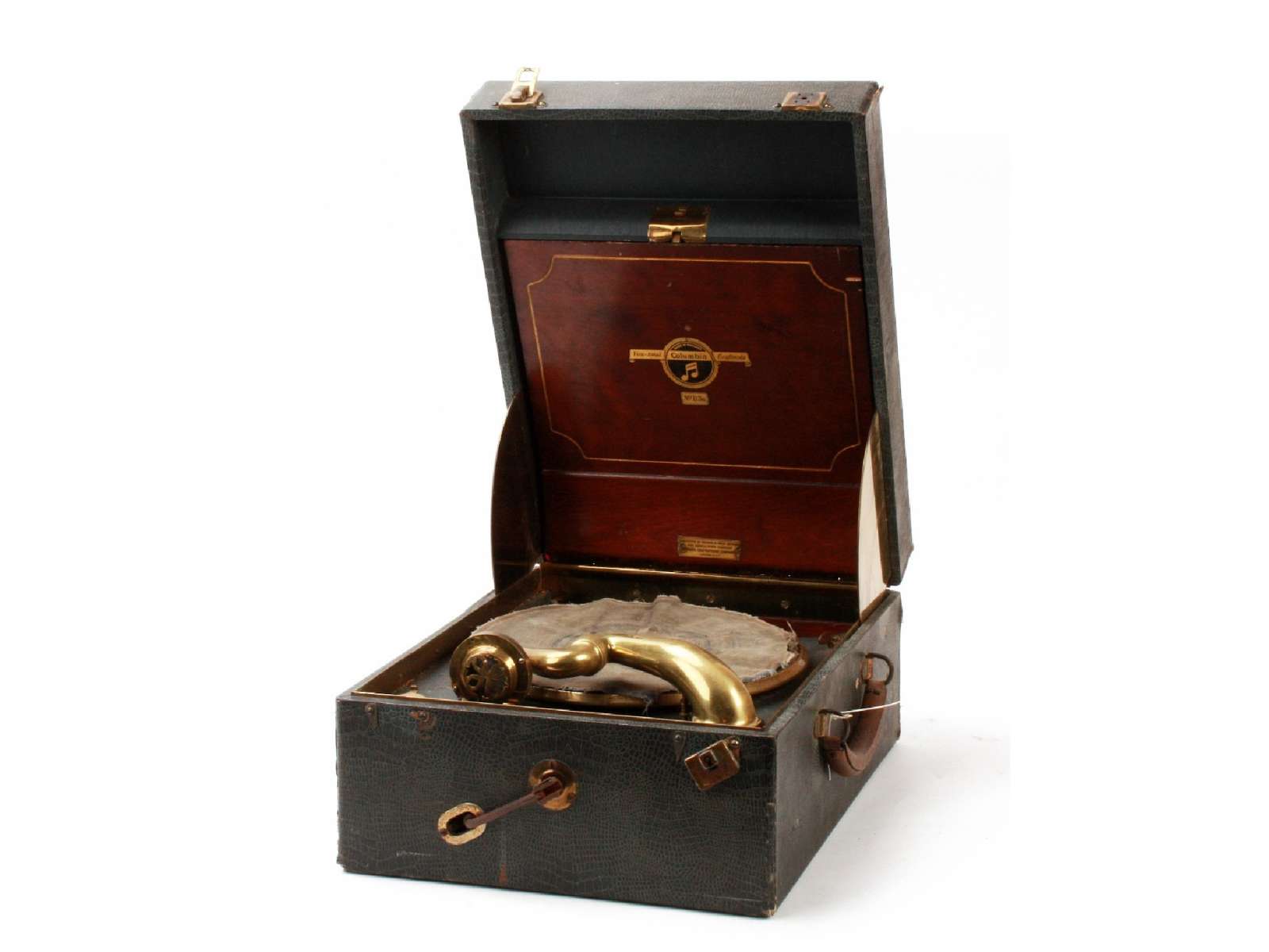 de 104 van columbia had geen merk of type plaatje dit gebeurd bij veel columbia's daarom zijn columbia grammofoons moeilijk te identificeren zonder catalogus