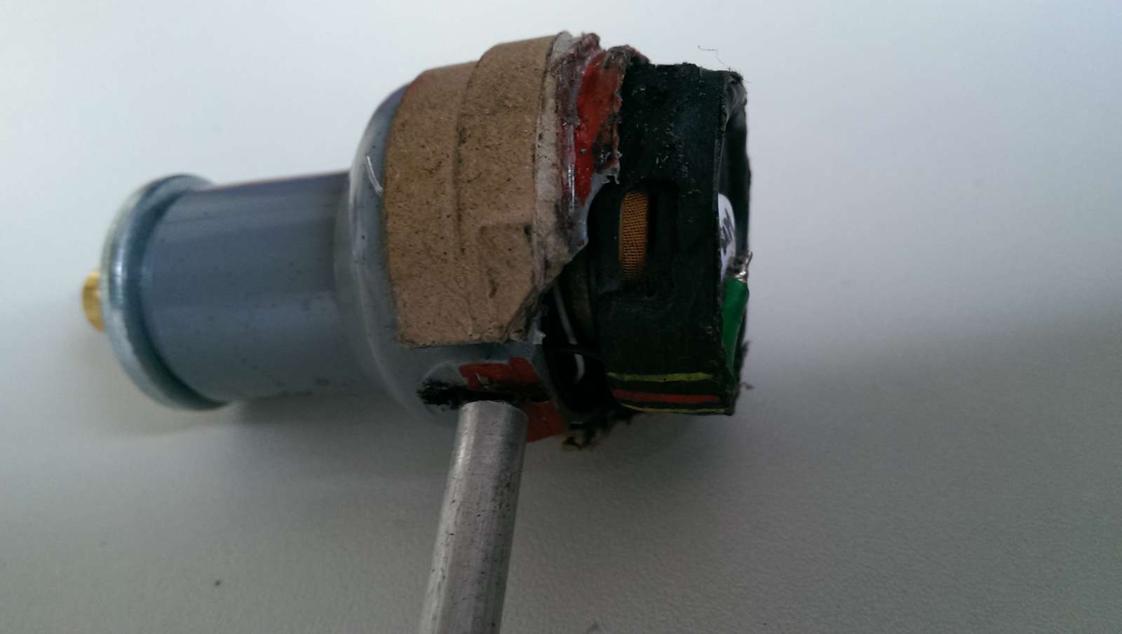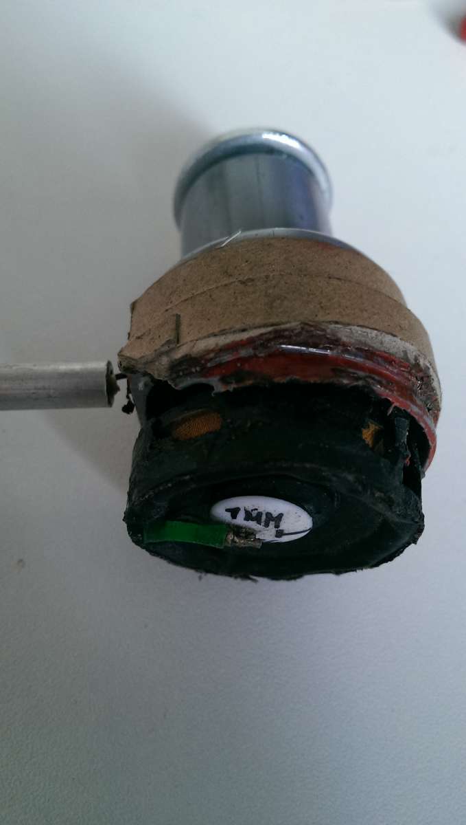 Het is een kleine luidspreker uit een telefoon, waarop de beitel zit bevestigd.