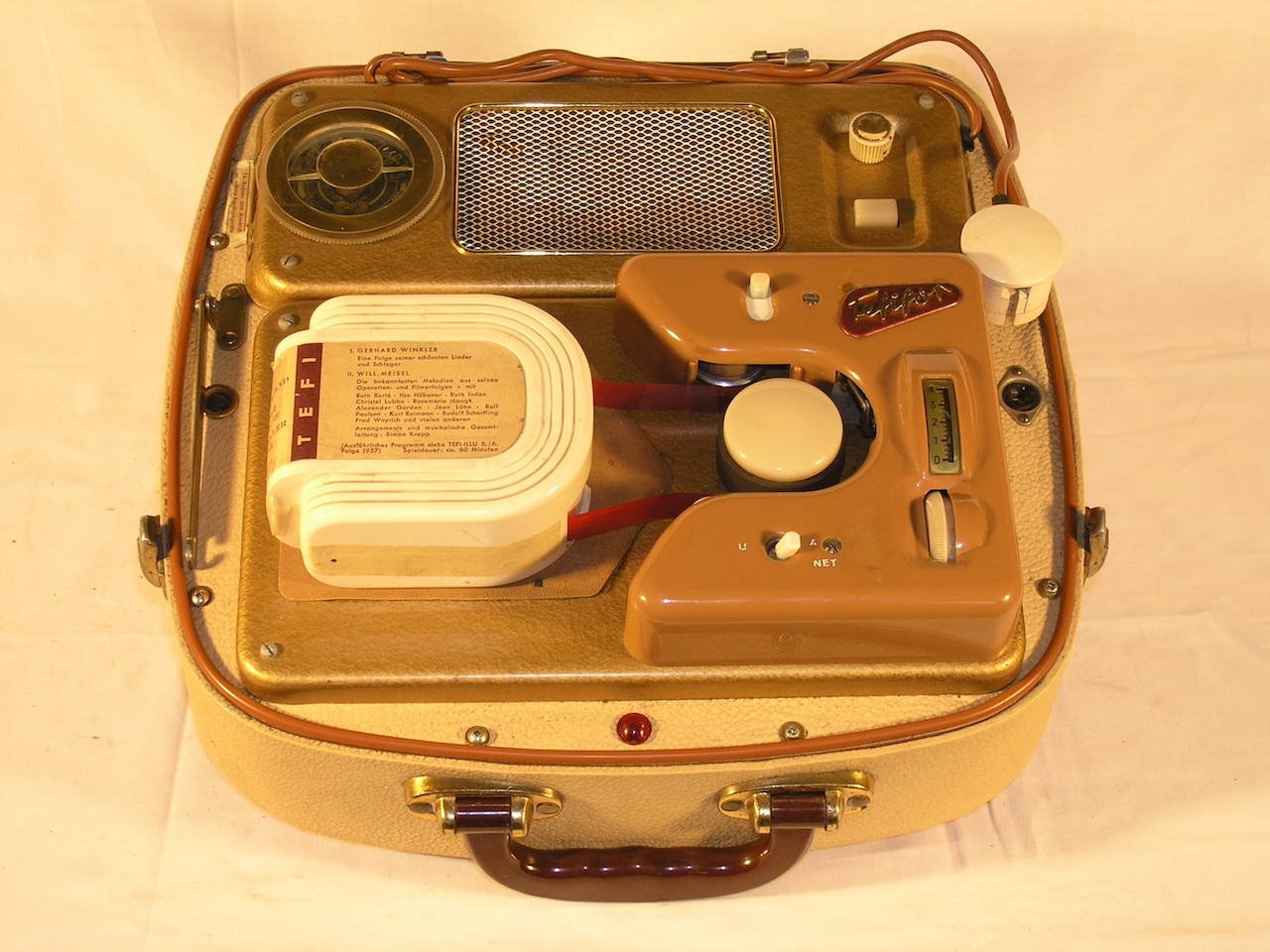 Deze heb ik voor je, model KC-1 met AM radio uit 1957. Incl. twee cassettes en de getoonde re-prints.